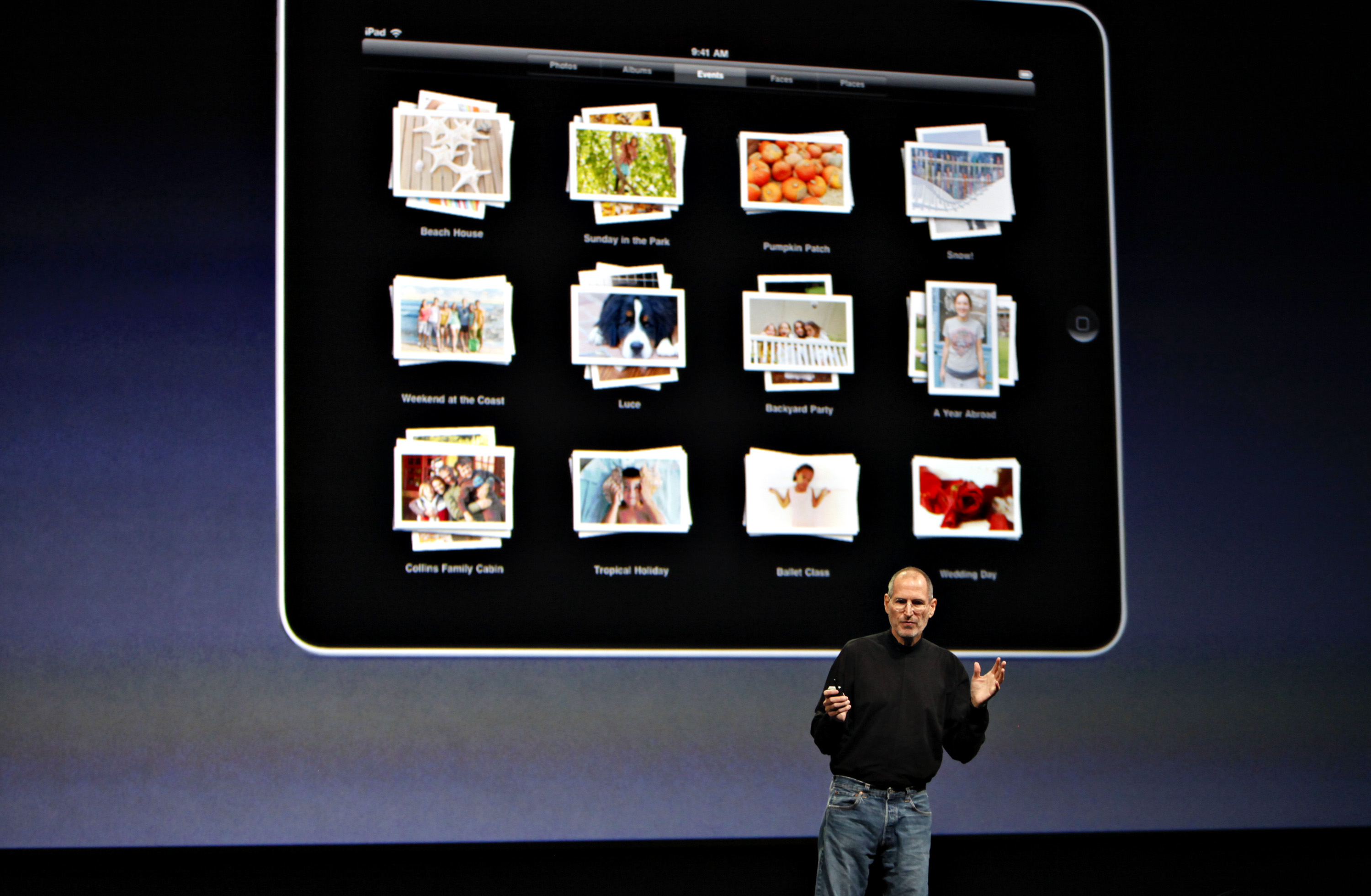 史蒂夫·乔布斯展示iPad。摄影师:Tony Avelar众所周知,苹果公司的iPad硬件比其软件更先进——从一开始就是如此。