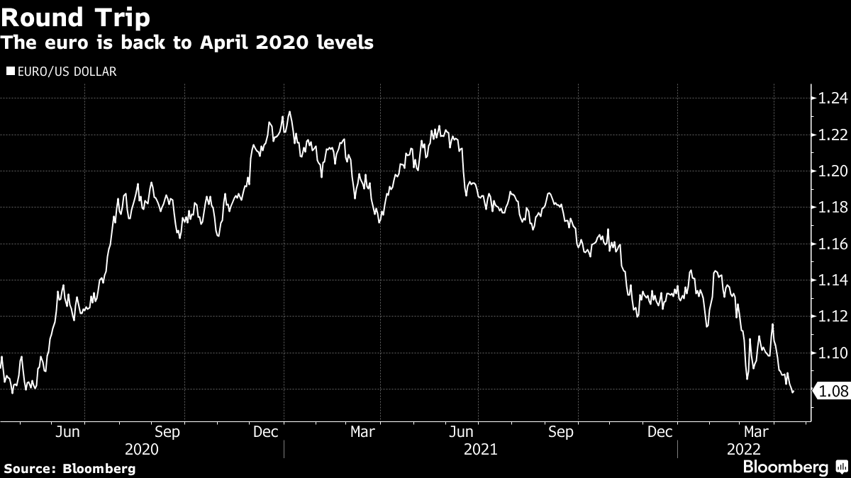 一切都归结为欧洲面临更多下行风险。一些风险已经被定价。欧元的交易接近2020年春季疫情高峰时期的低点。在那之后,你必须回到2017年 —— 就在上一次法国选举之前 —— 才能找到共同货币的下一个低点。