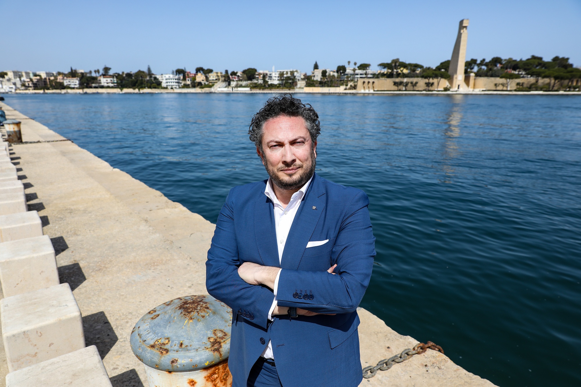 布林迪西康菲工商协会主席加布里埃莱·梅诺蒂·利波利斯在2022年3月29日星期二于意大利布林迪西拍摄的肖像。摄影师:亚历西娅·皮尔多梅尼科/彭博社“为此,您需要在一个集成的港口、火车、卡车系统上负责任地花钱,让它们自由地运转,”他站在标志着陆路尽头的两根罗马柱旁边说。