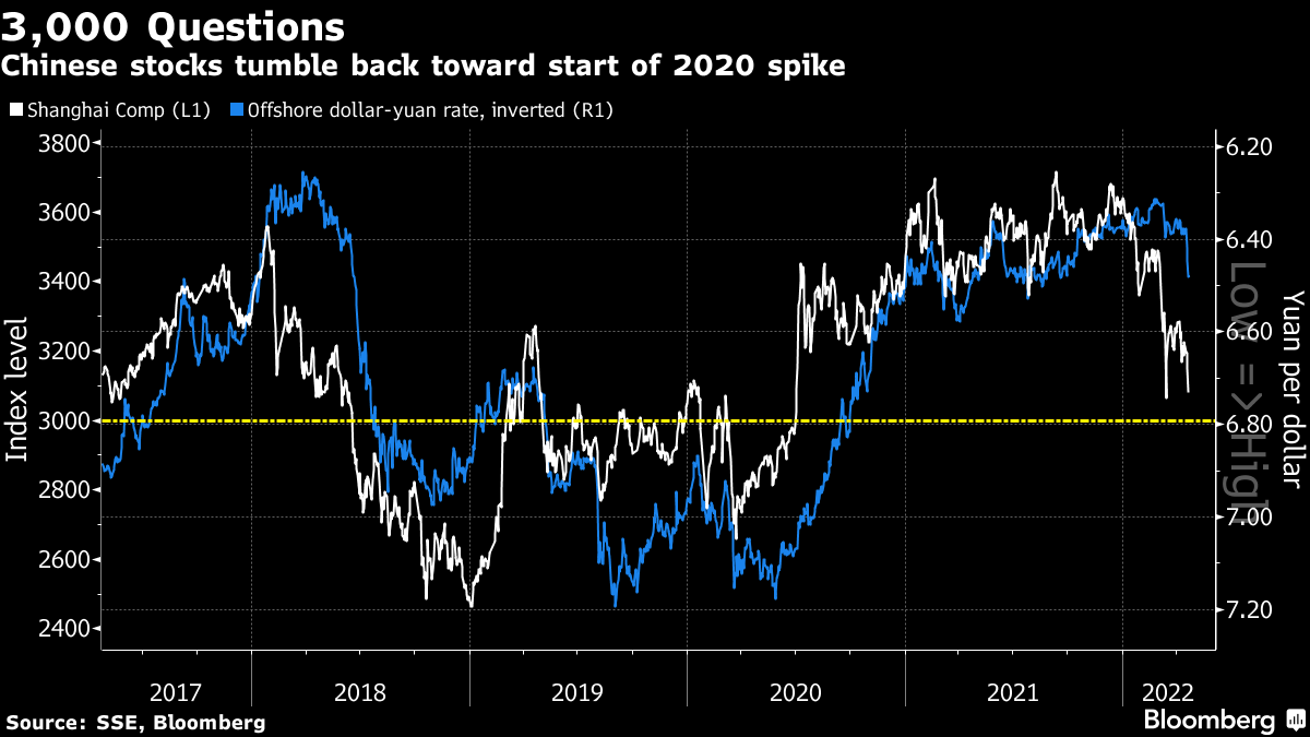 他们的问题之一可能是另一个数字。随着人民币跌向自疫情爆发以来最糟糕的一周,人民币即将跌破兑美元6.50的关口。人民币和中国股市一起走势的方式突显了外国资金撤离加剧了该国股票和债券的下跌。周五的央行人民币定价可能是关于中国有多准备阻止股市下跌的最好信号。