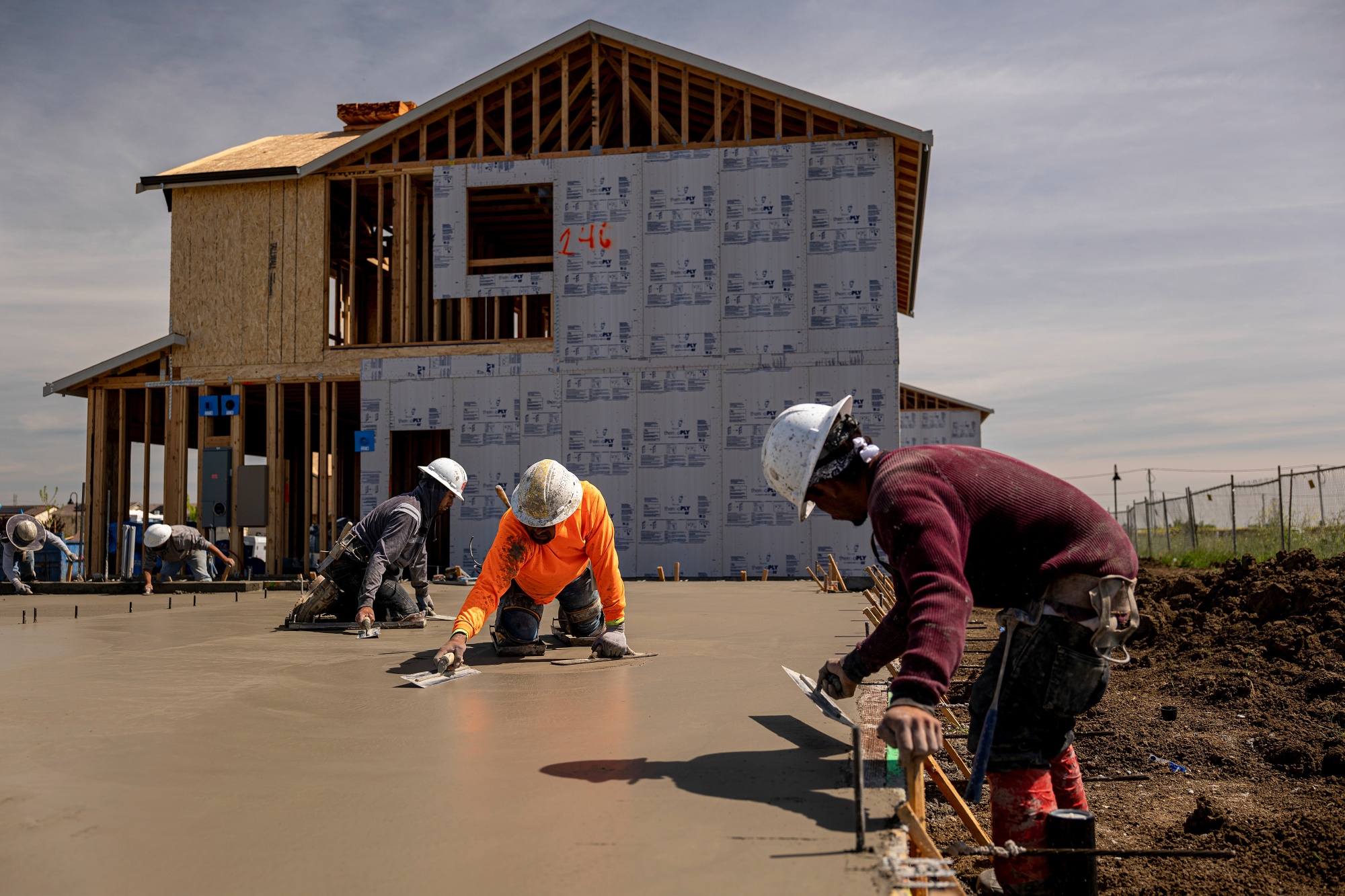 承包商们在加利福尼亚州安提奥克的一个住宅开发项目上工作,日期为3月31日