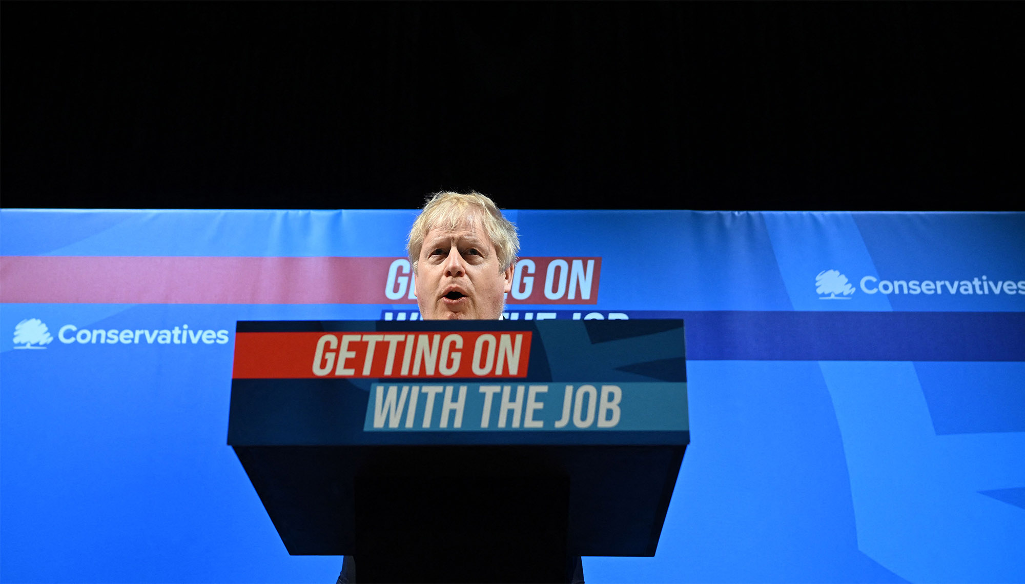 英国首相鲍里斯·约翰逊在3月19日保守党春季大会上讲话。