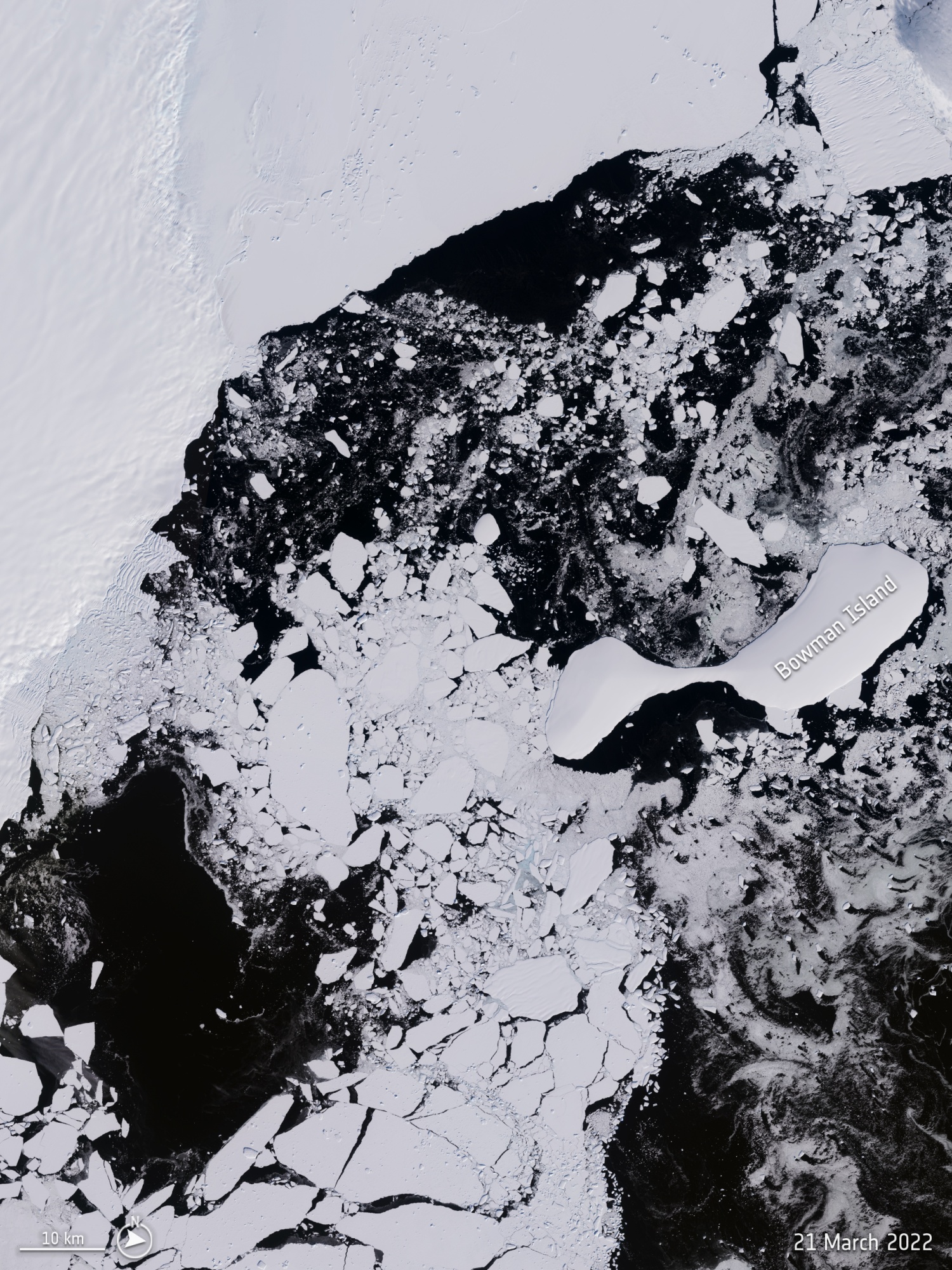 哥白尼哨兵-2任务捕捉到了东南极洲康格尔冰架的坍塌,发生在三月。来源:欧洲航天局“温室气体持续增加是全球温度上升的主要驱动因素,”哥白尼的高级科学家、该报告的首席作者弗蕾娅·范博格说道。“关键信息将会一再重复,除非有根本性的改变,否则不会在不久的将来发生改变。”