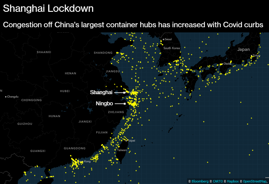 中国的新冠危机威胁到2022年夏季全球供应链混乱 - 彭博社