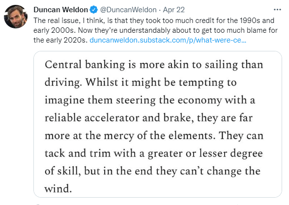 提高利率无法结束乌克兰战争,无法完全遏制不断上涨的大宗商品成本,也无法治愈冠状病毒。这些事件给经济体带来了一系列供应冲击,这些冲击正在锁定供应链并推高价格。