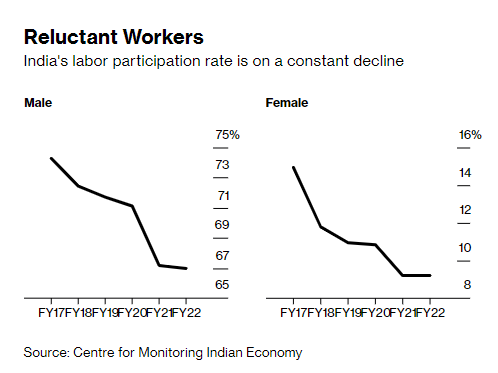 - 人群边缘 | 印度庞大的劳动力中,大多数人已经停止寻找工作,根据一家私人公司的新数据,只有9%的妇女在就业或寻找工作。