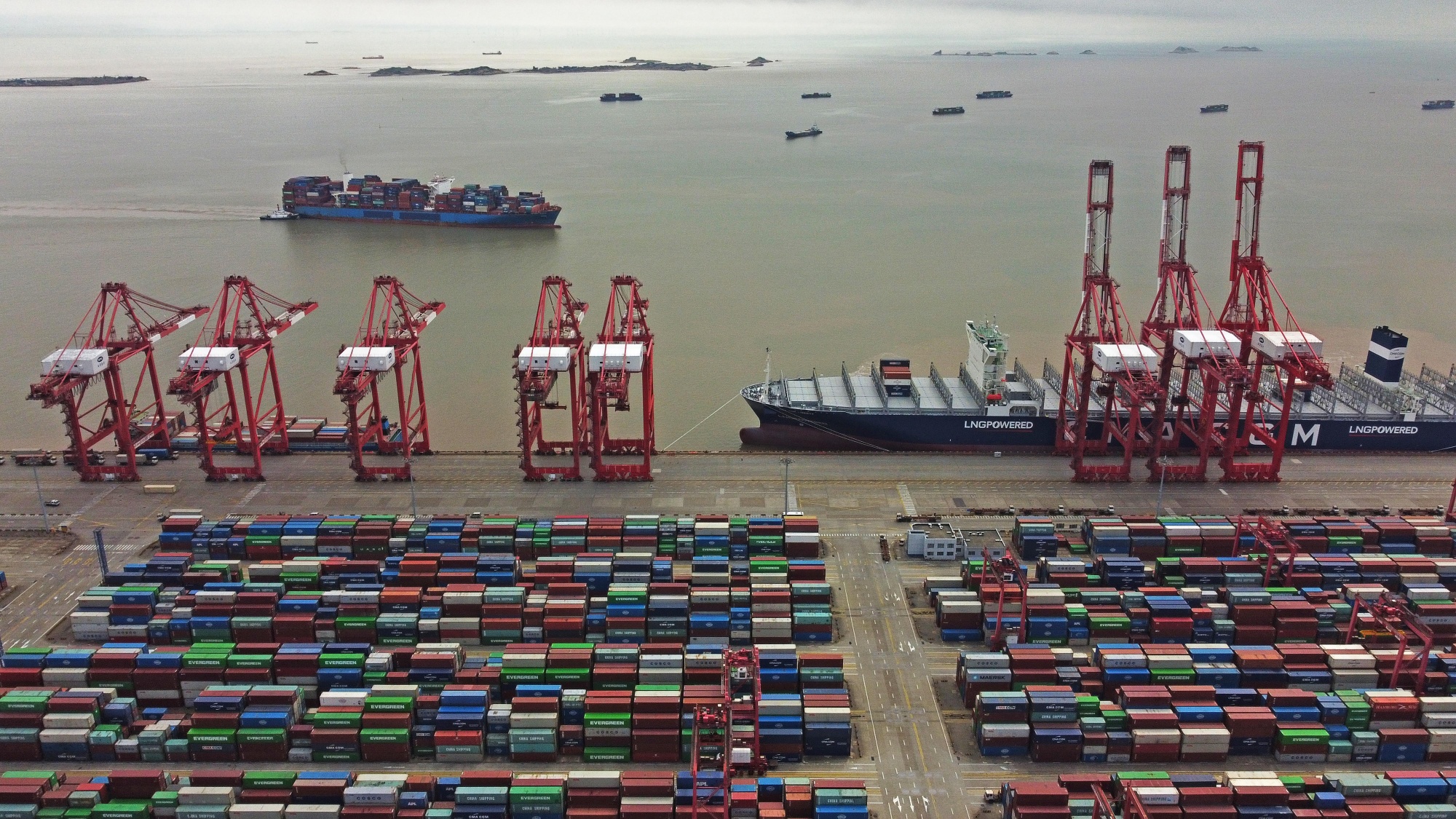 4月24日上海洋山深水港。摄影师:尹立勤/中国新闻社/盖蒂图片社中国为遏制新冠疫情而实施的严格规定即将在亚洲、美国和欧洲之间的供应链上引发另一波混乱,正值夏季来临。