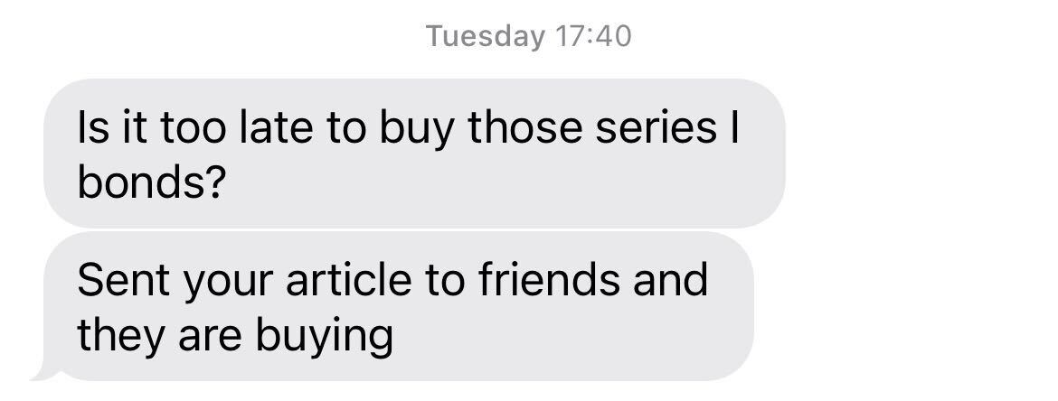 他所说的债券是来自美国财政部的抵御通货膨胀的I系列储蓄债券。他发给所有朋友的文章是这篇,它明确了一个对于担心通货膨胀的美国投资者来说很重要的观点:你有三天的时间锁定一年的高收益率,来自一些非常低风险的债券。