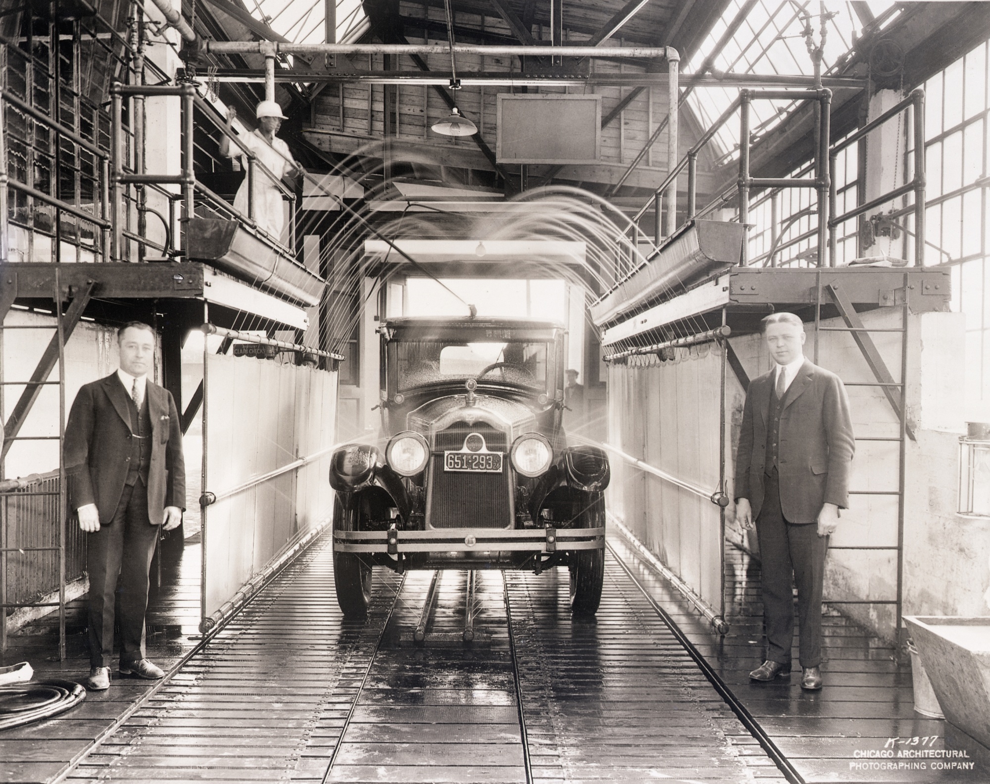 在第一批无马车辆问世后不久,企业家们开始创办企业,清洗那个时代未铺设道路上的尘土和泥浆。第一项汽车洗车专利,汉利车辆洗涤器,于1900年申请;“汽车洗衣房”和“汽车洗涤盆”随后很快出现在美国城市中。