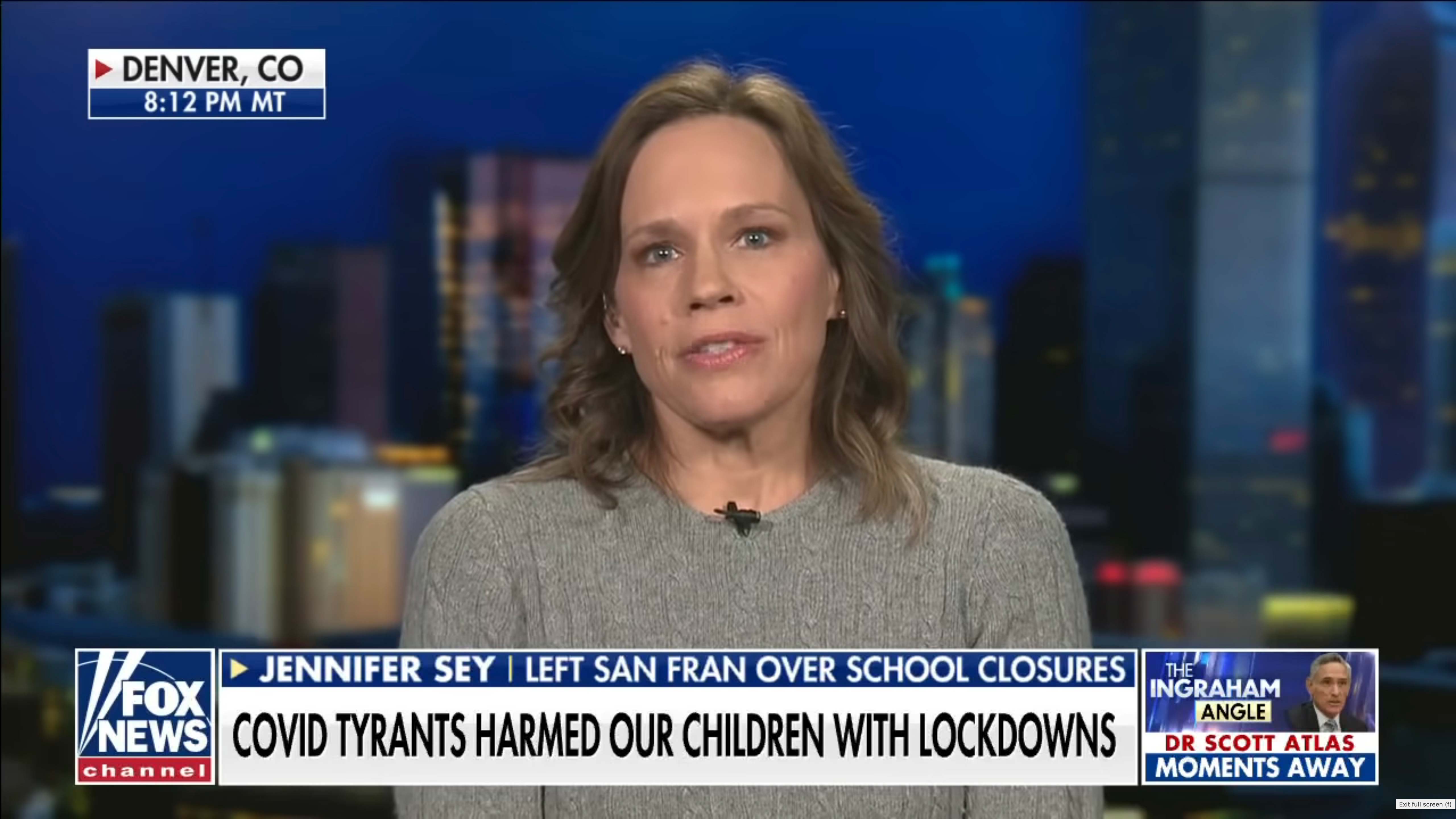 在塞伊发推特谈论家人决定搬家后,她被邀请参加*《英格拉姆角》*在福克斯新闻上作为一个“逃离”加利福尼亚州苛刻Covid规定的母亲。在上节目之前,她告诉伯格她要做一个电视采访,但没有说是哪个节目。塞伊在节目中没有提到李维斯,也没有在她上台的四分钟内说任何有争议的话,但在她的节目之前,主持人劳拉·英格拉姆抨击“医疗媒体卡特尔”,下方的字幕闪烁着“民主党人推动一系列谎言以掩盖激进议程。”