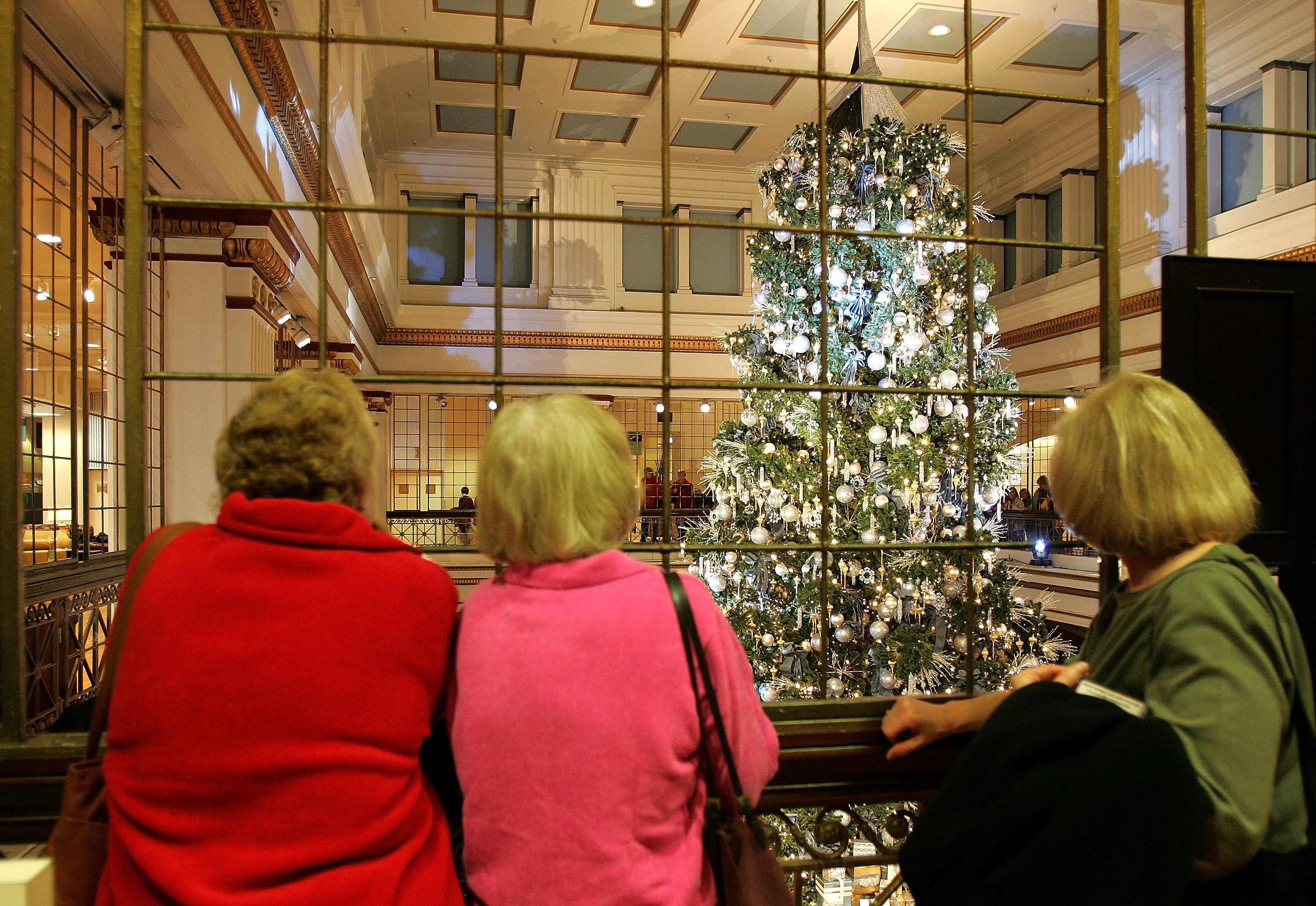 购物者在2005年停下来观看马歇尔菲尔兹百货公司的圣诞树展示,当时该商店改为梅西百货。摄影师:蒂姆·博伊尔/盖蒂图片社 北美在20世纪80年代和90年代崩溃时,一股整合浪潮席卷了该行业:例如,俄亥俄州扬斯敦的百货商店Strouss’被梅公司收购,卡夫曼(Kaufmann’s)、马歇尔菲尔兹(Marshall Field’s)和许多其他地区品牌也是如此;最终,梅公司的商店被联合收购,大多数商店被重新品牌为梅西百货 — 令许多购物者感到沮丧,因为他们目睹心爱的本地品牌消失了。