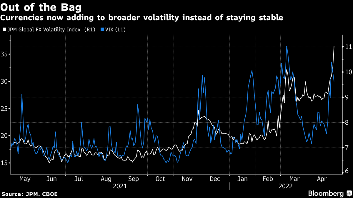 各类资产的波动性正在上升,但也许跨6.6万亿美元外汇市场焦虑情绪的复苏增加了对这种情况产生的担忧的紧迫性。在过去的大部分时间里,即使债券和/或股票的恐慌指数飙升,货币也保持平静。笼罩着央行疫情时期刺激措施的持久影响,外汇领域提供了受欢迎的稳定性。