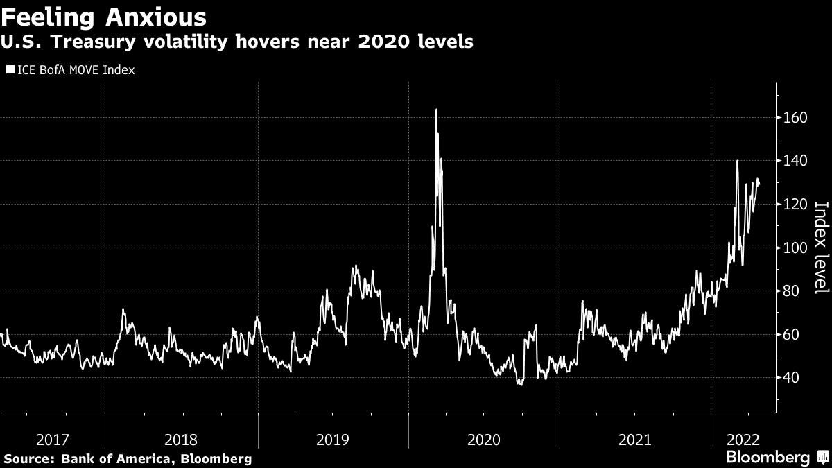 这是一个大胆的判断,特别是在MOVE指数接近2020年以来最高水平的情况下,同时投资者、策略师和经济学家们都在为超级规模的联邦利率上涨做准备。但卡巴纳等人承认他们在这个判断上还为时过早。