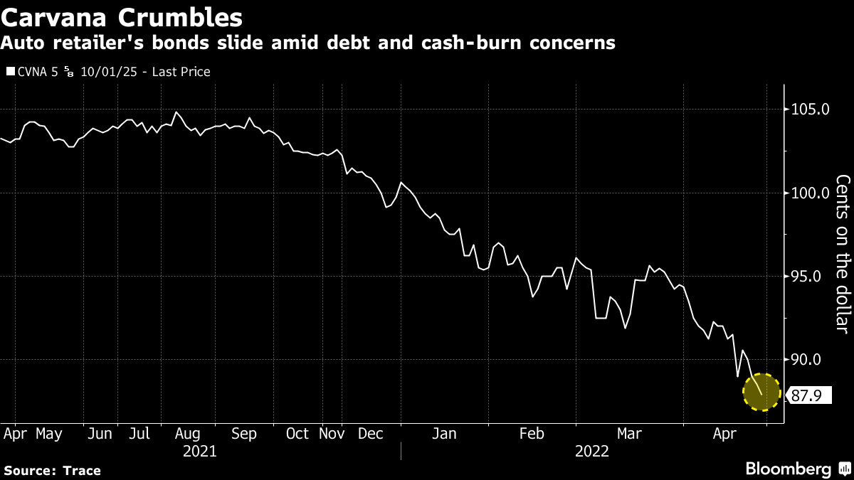 单单价格走势就告诉你,当前信贷市场的风险偏好不稳定:美国垃圾债券正走向自2020年3月以来的最糟糕月份,CCC级债券正迎来连续第四个月的下跌。尽管如此,Carvana Co.本周的垃圾债券传奇增添了感叹号。