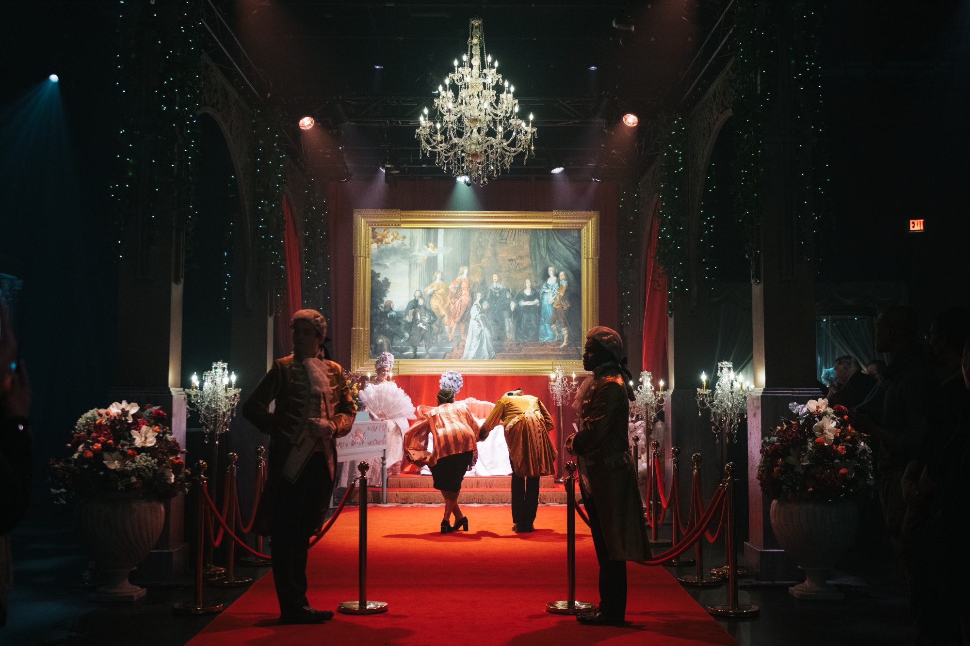 向夏洛特女王(或近似者)致敬!摄影师:Shaughn Cooper这场持续90分钟的奇观,于三月在洛杉矶首演,目前正在华盛顿特区、芝加哥和蒙特利尔上演,不仅仅是一个以电视为主题的派对,更是一场完整的摄政复兴。每周五晚,这些城市的许多参与者穿上19世纪风格的服装,争取一个活生生的判断女王的注意。人们自愿跳四对舞。沉浸式的“布里奇顿”是去年登陆美国的梵高装置艺术浪潮的实景角色扮演继任者,也是疫情期间最大娱乐趋势的氛围转变。巨大的梵高装置艺术浪潮的继任者。