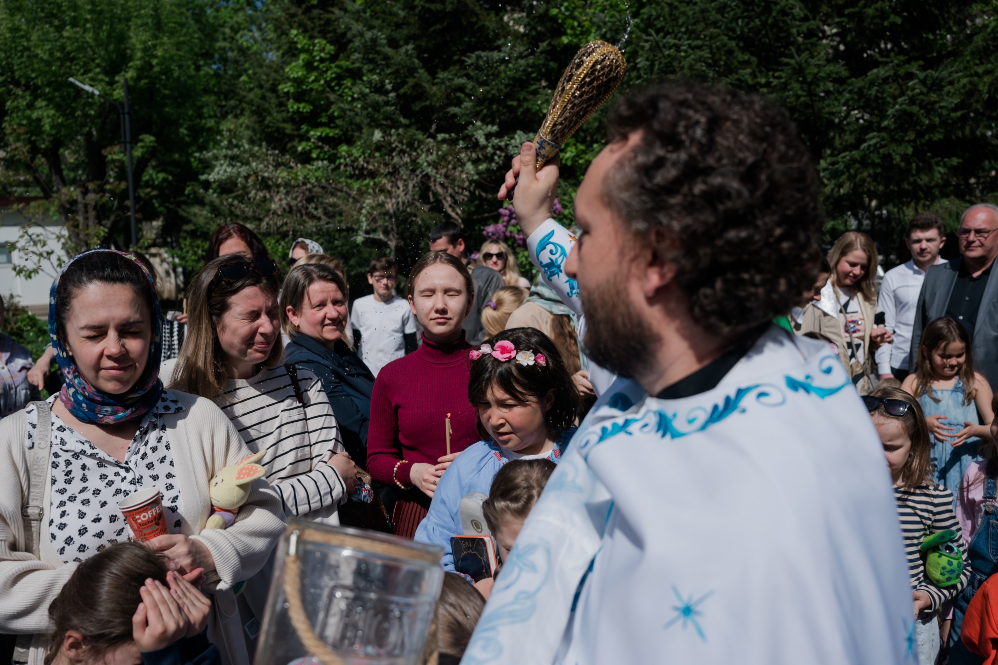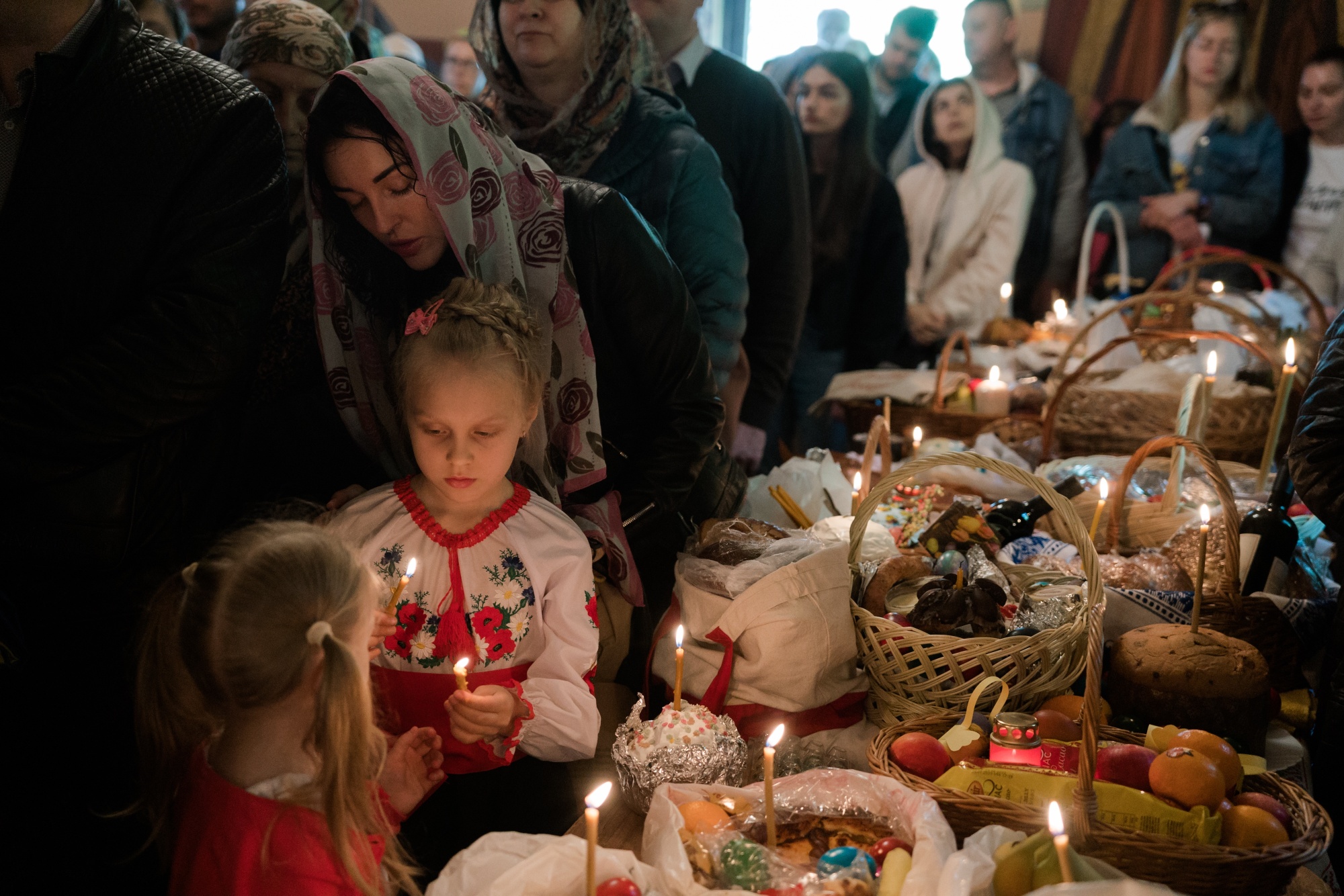 乌克兰难民和居民参加了4月24日在罗马尼亚布加勒斯特举行的东正教复活节礼拜。