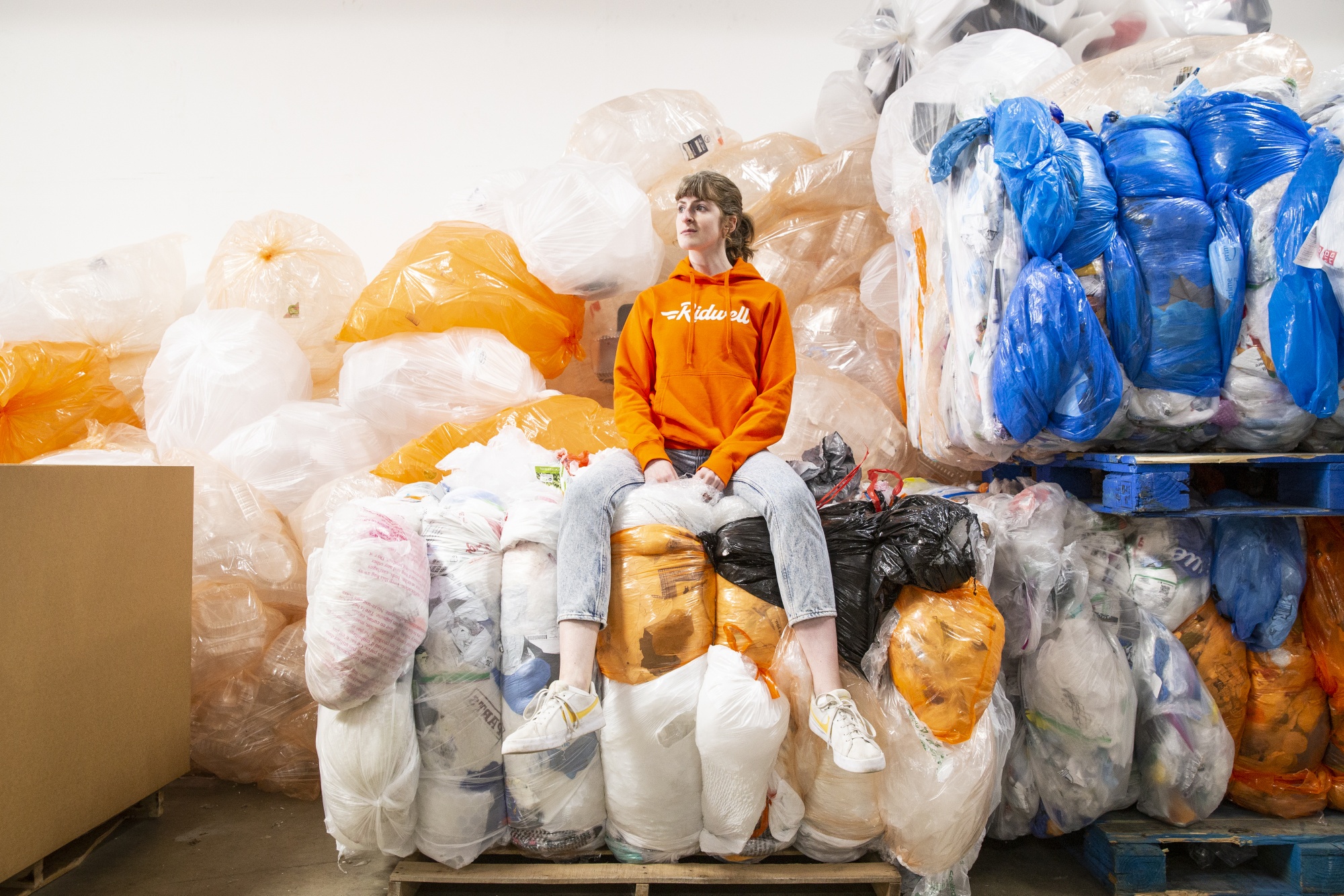 Taylor Loewen,Ridwell波特兰业务总经理,坐在仓库的塑料包装上。摄影师:Moriah Ratner/BloombergFransen是波特兰服务的近300名早期采用者之一,该服务于2020年11月开始运营。从那时起,那里的订阅者人数增长到22,400人。 Ridwell首先在西雅图推出并建立自己,然后扩展到波特兰、华盛顿州贝灵汉姆、丹佛、明尼阿波利斯和奥斯汀。总订阅者人数约为60,000人。该公司是少数致力于消除塑料包装并利用菌丝制造可堆肥塑料的环保初创公司之一。