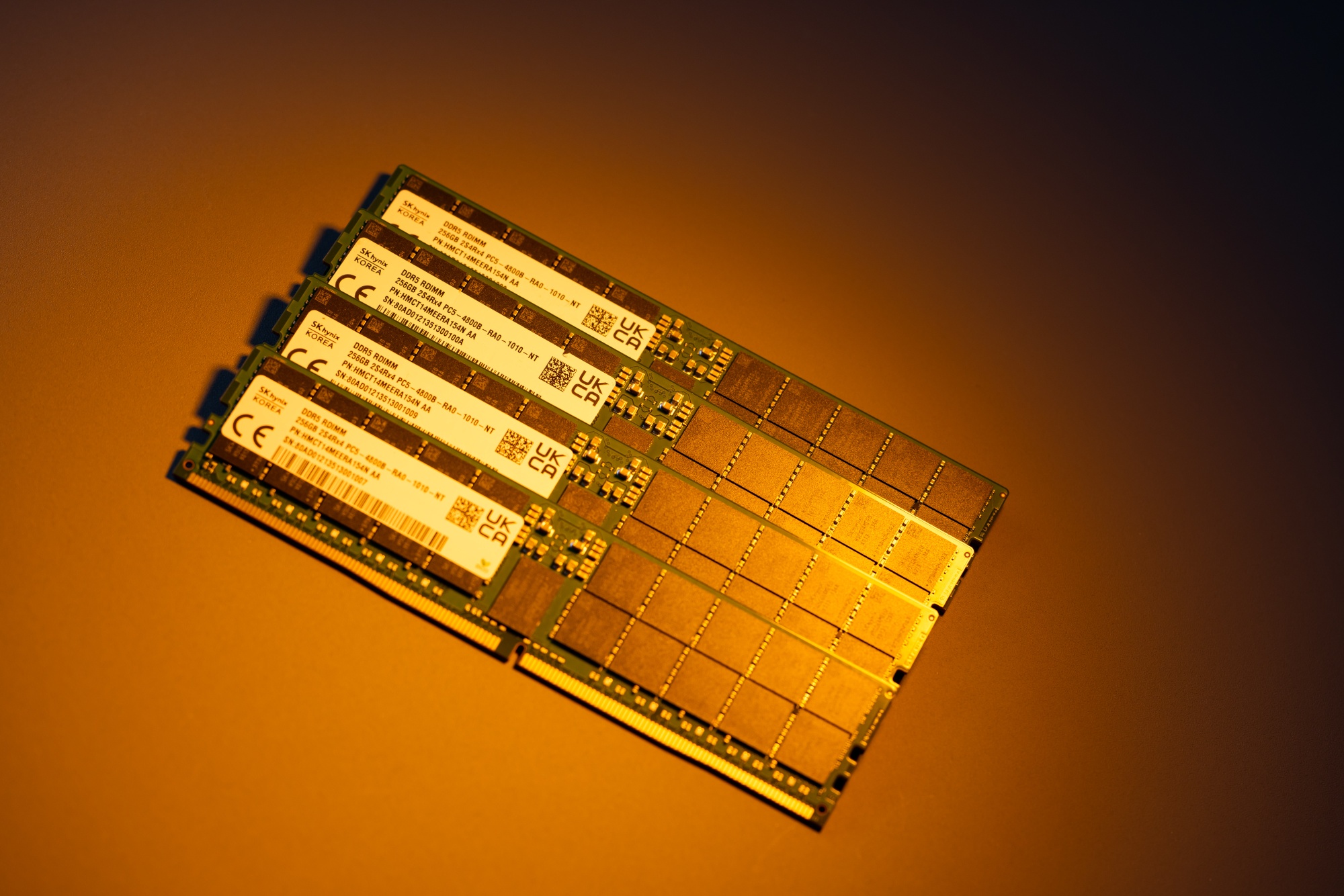 SK Hynix Inc. 256GB 双数据速率(DDR)5 内存模块在该公司位于韩国城南的办公室。