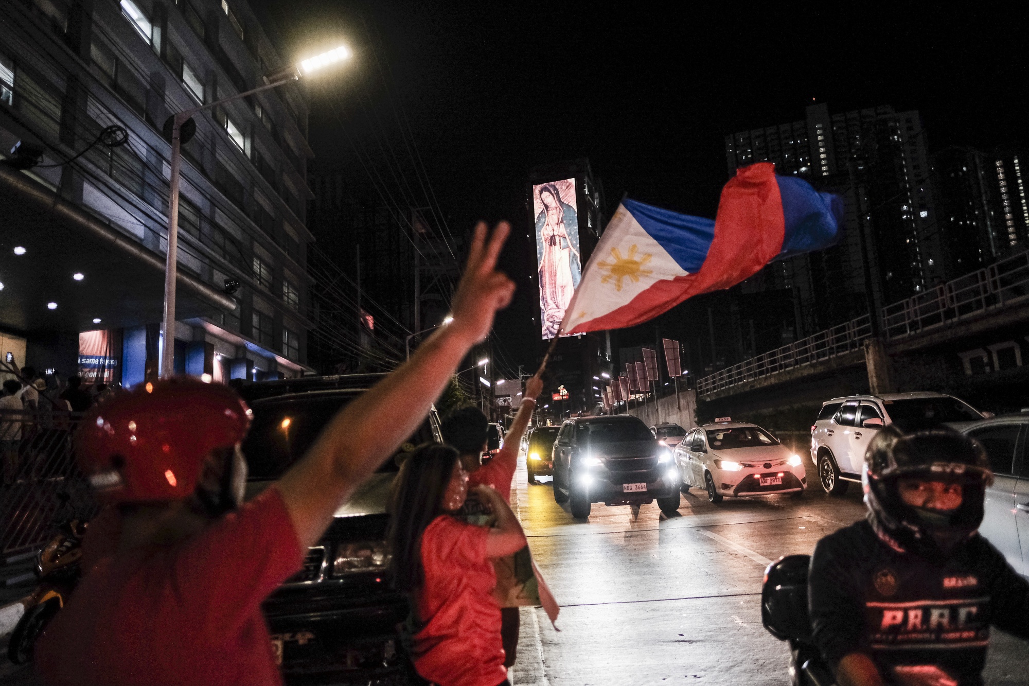 菲律宾总统选举中,费迪南德·马科斯 Jr. 的支持者在5月9日于马尼拉的竞选总部外。