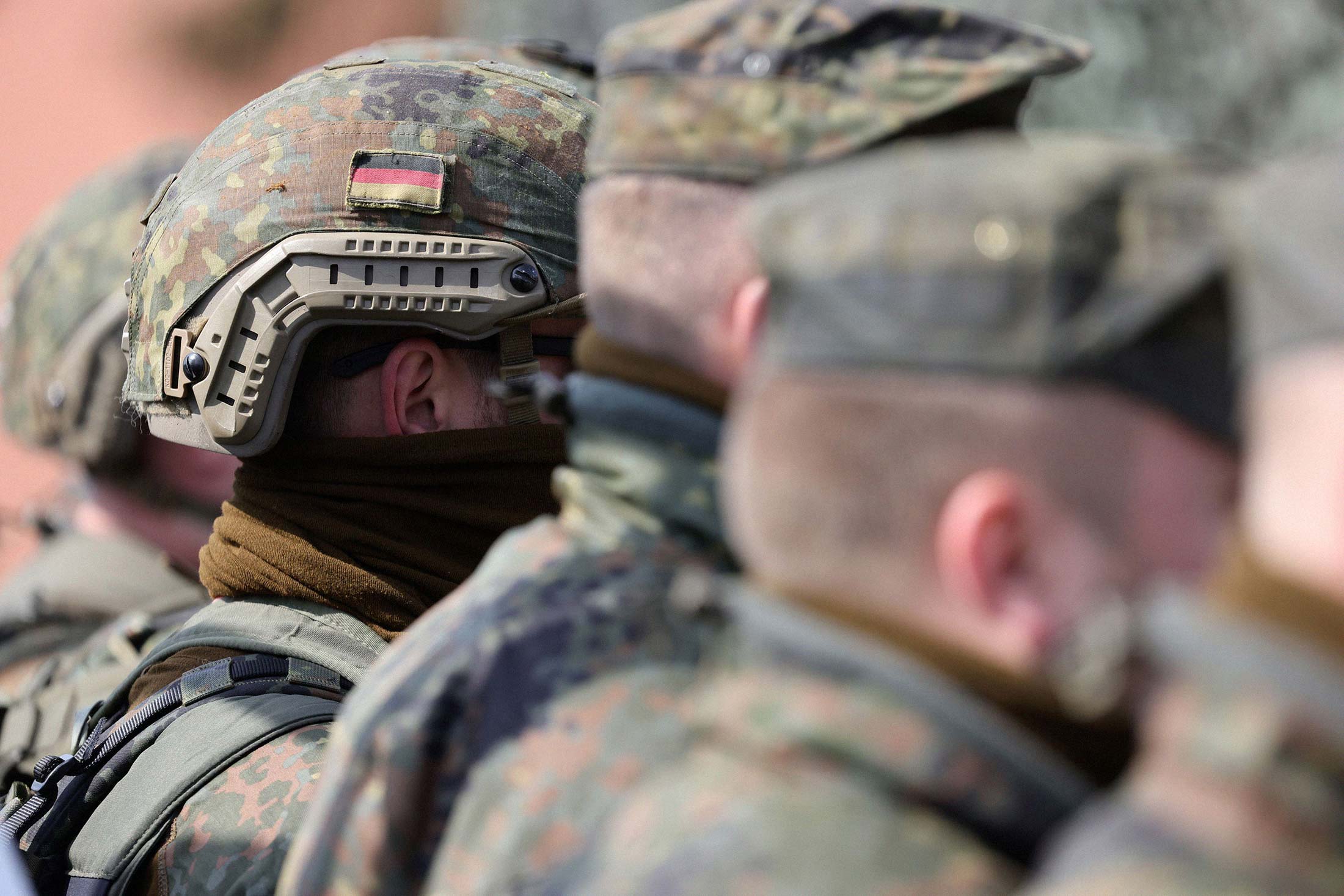 一名德国联邦国防军第21装甲旅坦克旅的士兵的战斗头盔于3月30日在德国奥古斯特多夫。