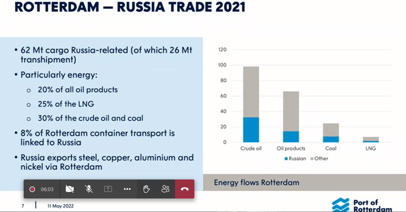欧洲最繁忙的港口今天举行了新闻发布会,讨论了展望和诸如其暴露于俄罗斯对乌克兰战争的经济影响等问题。卡斯泰林表示,即使有更多制裁打击俄罗斯出口,该港口也“处于一个良好位置”来应对挑战。
