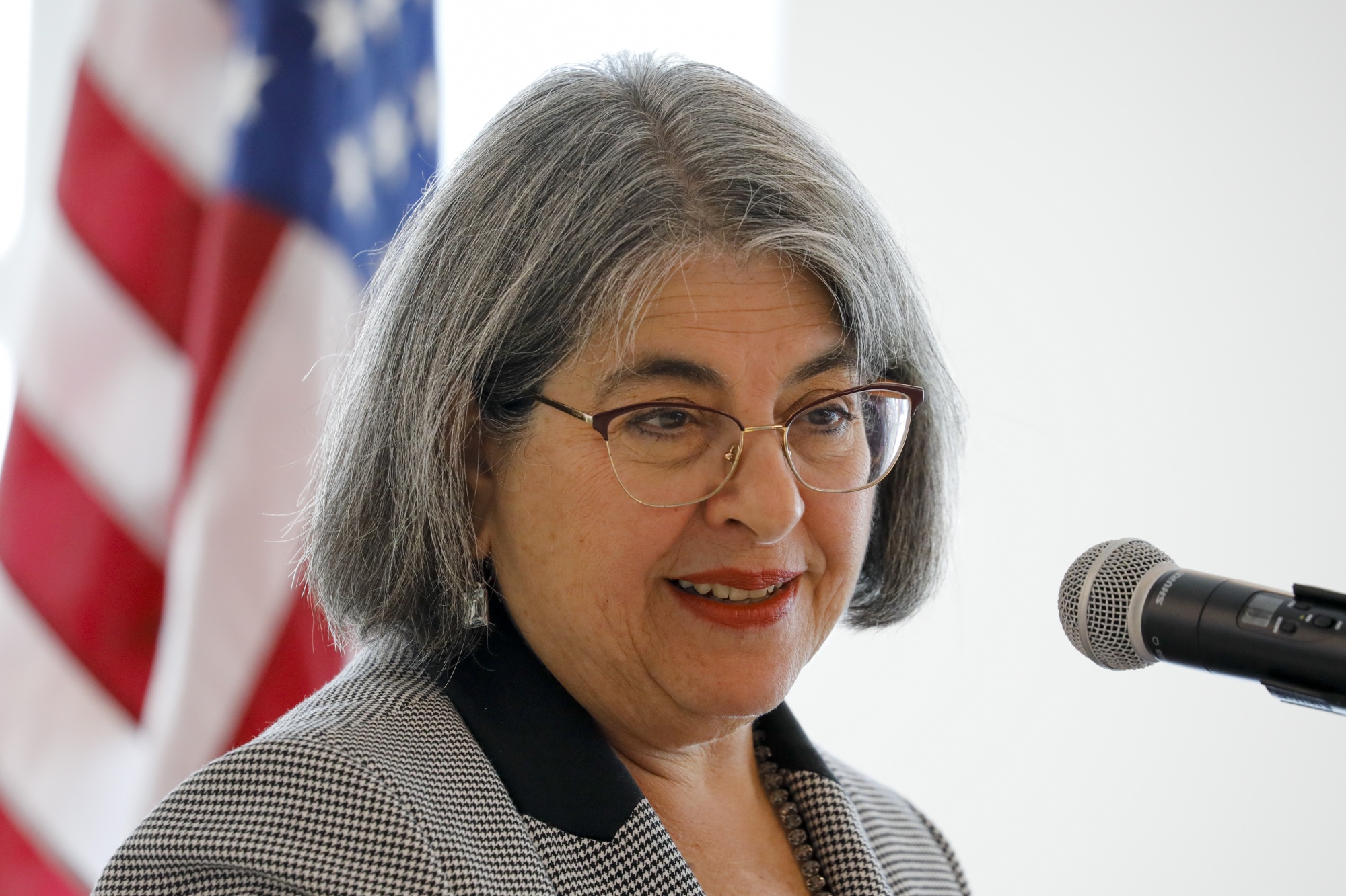 迈阿密戴德县县长丹妮拉·莱文·卡瓦(Daniella Levine Cava)在迈阿密海滩举行的阿斯彭思想气候大会上发言。