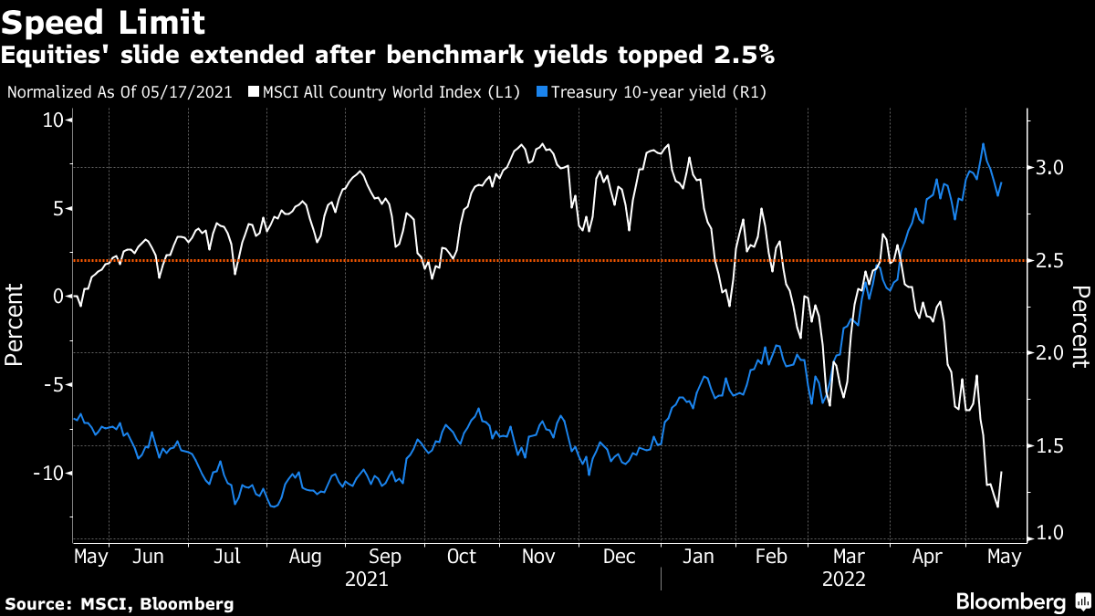 股市在10年期收益率突破2.5%后迅速下跌,许多政策制定者指出这大约是中性的联邦基准利率所在。这表明股票投资者对当前估值的可持续性存在疑虑,如果没有央行支持,这也提高了收益率超过3%将难以维持的可能性,即使面临持续的通胀。