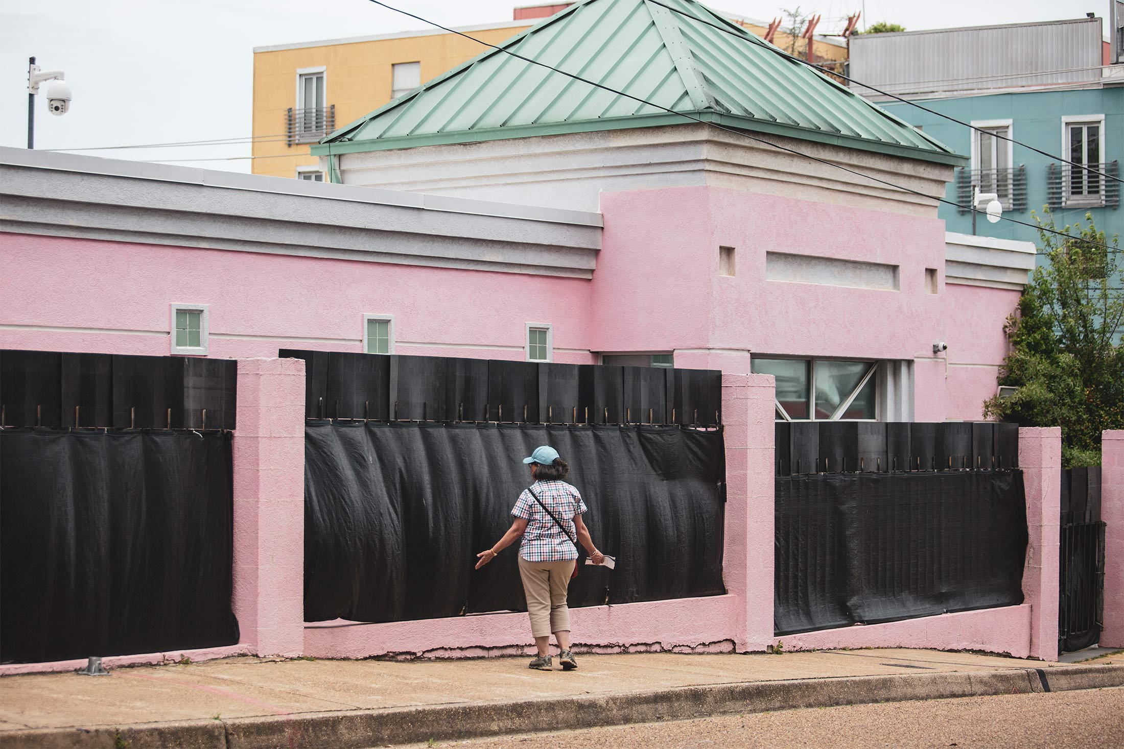 5月3日,一名反堕胎抗议者试图与杰克逊妇女健康组织(Jackson Women’s Health Organization)外的一名患者交谈,后者被一道围栏隔开,这家位于密西西比州的诊所是一场最高法院争议的焦点。