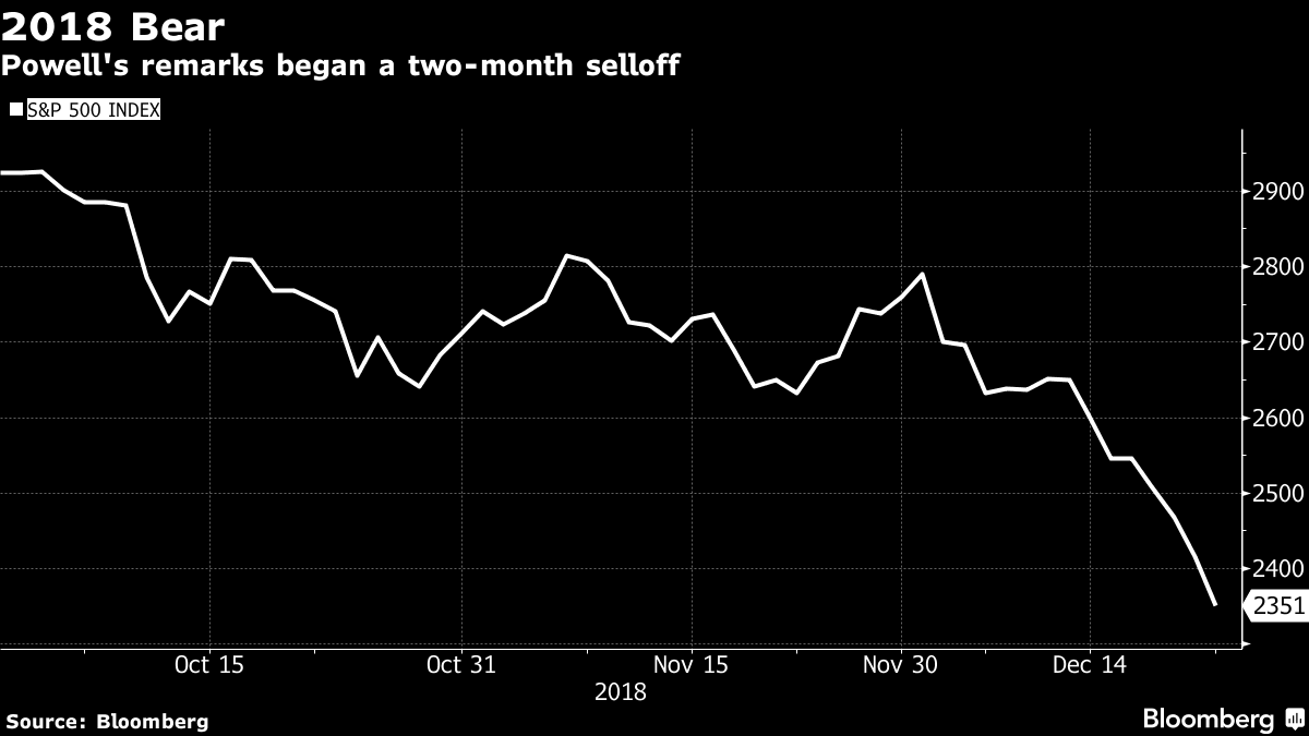 市场对此非常不满。他们立即抛售,并持续下跌两个月,直到2018年圣诞节前夕达到熊市高潮。