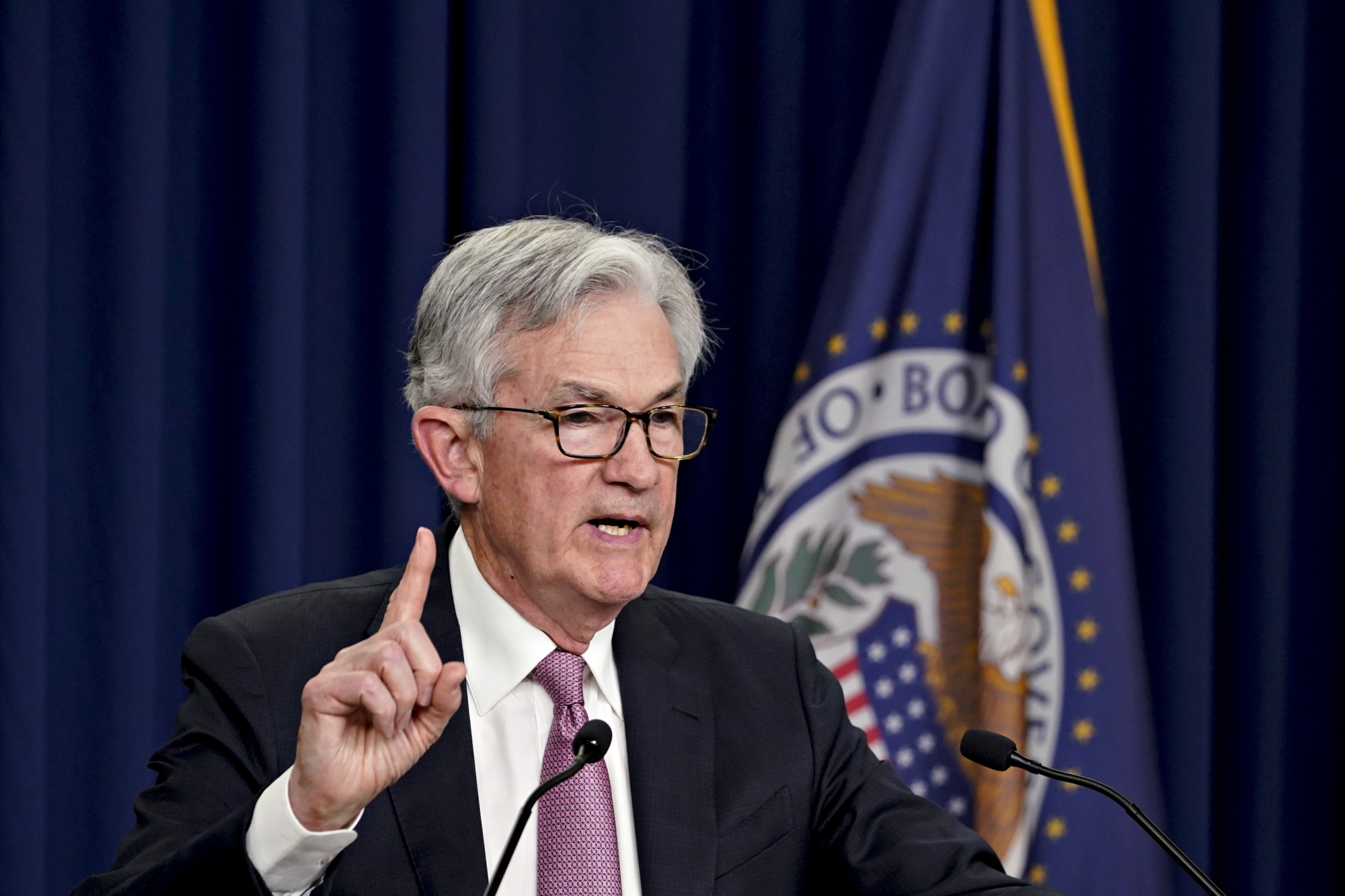 美联储主席杰罗姆·鲍威尔在美联储将利率上调至2000年以来最大幅度后举行新闻发布会发表讲话。