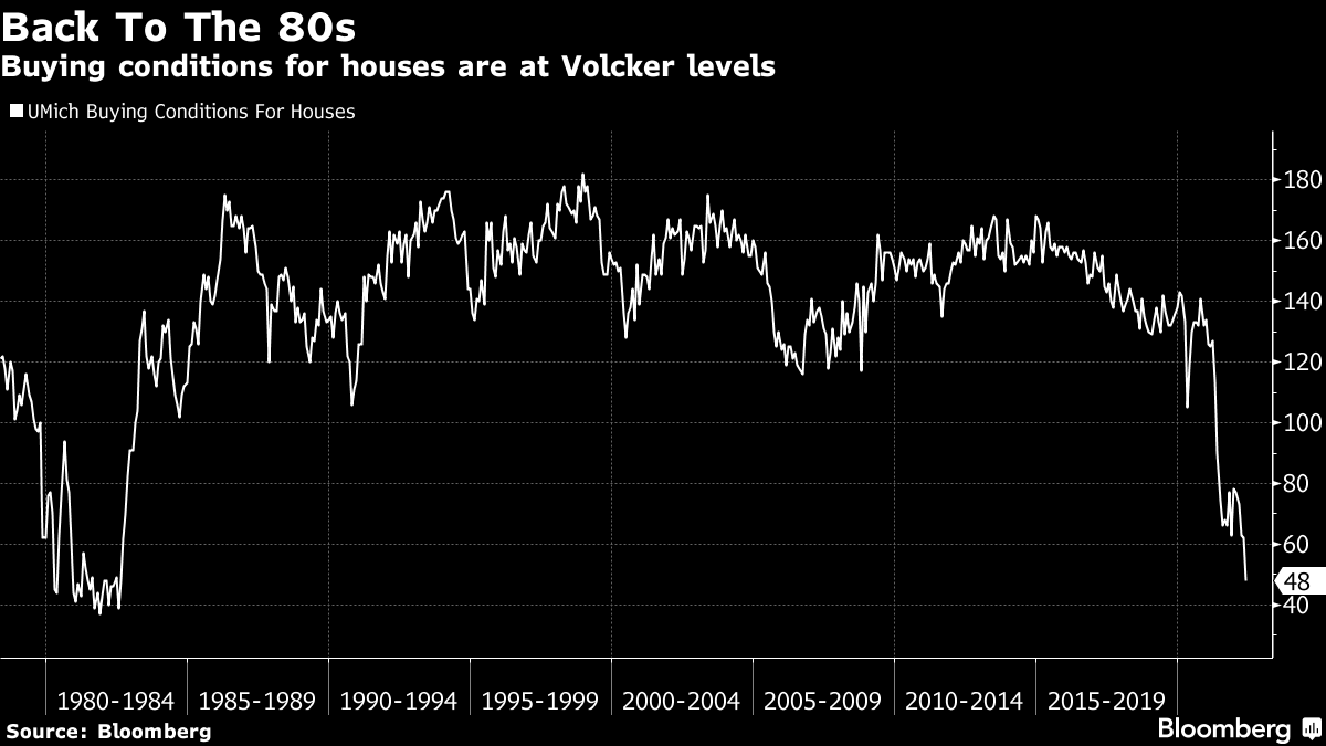 如果交易员在八月度假后回来,面对一个准备继续以50个基点的增幅加息甚至加息三个四分之一点的联邦储备局,那时市场暴跌和金融条件急剧收紧的风险将呈指数级增长。再加上房地产市场可能因抵押贷款利率上升而陷入停滞,以及国内生产总值增长放缓,这就有可能引发足以在随后几个月内重新引入联邦储备局的保护性降息。人们只能希望到那时通胀已经减速到足够程度。哦,还有一件事,彭博的MLIV Pulse本周正在进行一项调查,询问读者这个问题,什么会让联邦储备局重新引入保护性降息。请看一下并回答这些问题。
