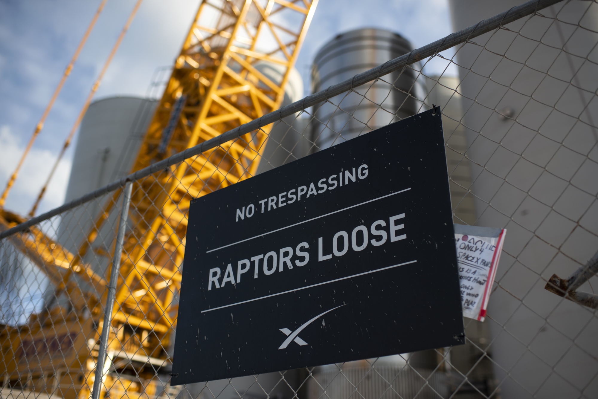 SpaceX发射场外的标志,2021年10月在德克萨斯州博卡奇卡建设中。