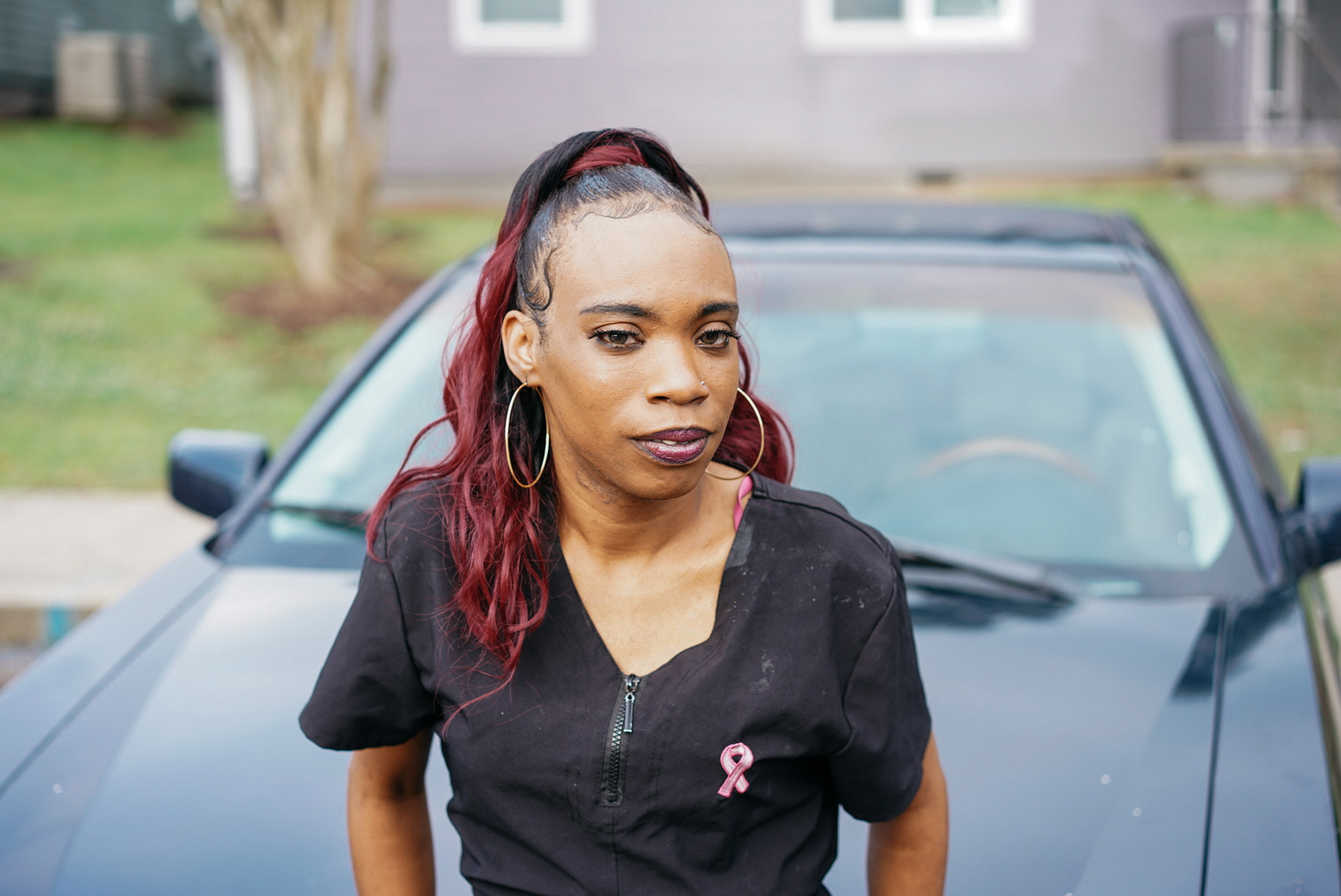 在用该计划的资金购买新车之前,卡尔霍恩缺乏可靠的交通工具是她在保住工作中的主要障碍。摄影师:Akasha Rabut for Bloomberg### 塔米卡·卡尔霍恩