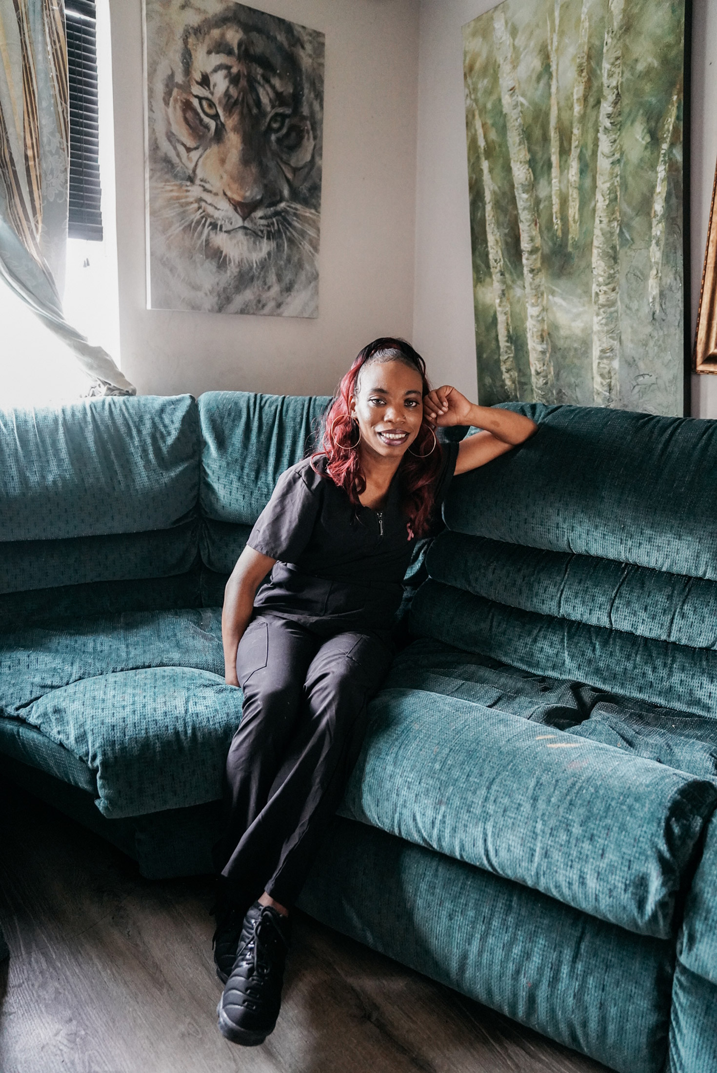 2021年4月,谢里卡·华盛顿开始每月从《玉兰母亲信托基金》获得1000美元。她用1700美元买了一辆车,并有足够的钱让油箱保持充满。摄影师:Akasha Rabut for Bloomberg### Sherika Washington
