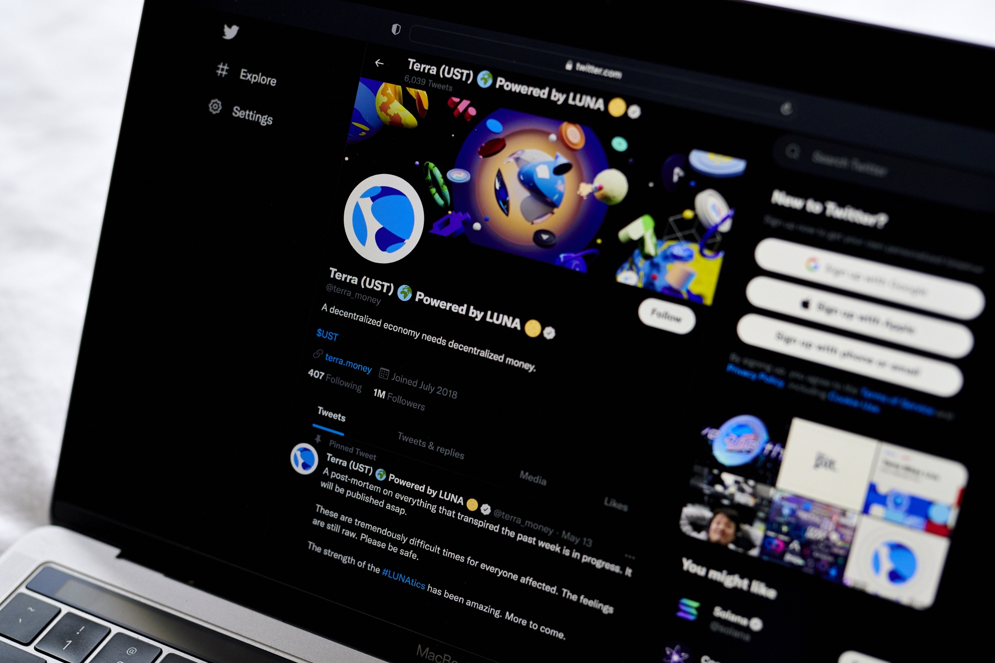 在笔记本电脑上的 Terra 推特页面。摄影师:Gabby Jones/Bloomberg他们估计美国家庭拥有全球加密货币市场约三分之一的份额,该市场从去年底的2.3万亿美元下降到现在的1.3万亿美元。鉴于美国家庭净资产去年高达150万亿美元,较少的加密货币钱包只是整体财富的一个小缺口。