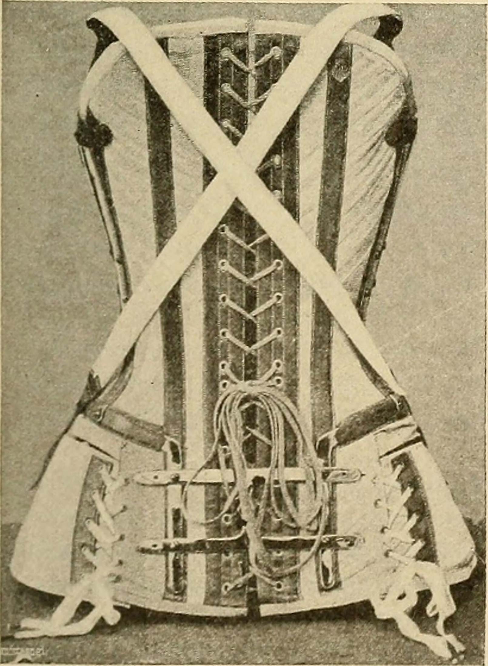 20世纪早期的紧身胸衣。照片:Reading Room/Alamy仅在美国,今年就会有数以万计的儿童和青少年被诊断患有脊柱侧弯。在大多数情况下,当侧弯轻微时,通常不会显著恶化,也不需要治疗,只需观察。如果侧弯更为明显,医生通常会开具背部支架,以阻止曲线的进展。未经治疗的严重脊柱侧弯会导致脊柱和肋骨不正常,挤压肺部,经常导致慢性疼痛和呼吸受限。当背部支架无效时,下一步是手术。