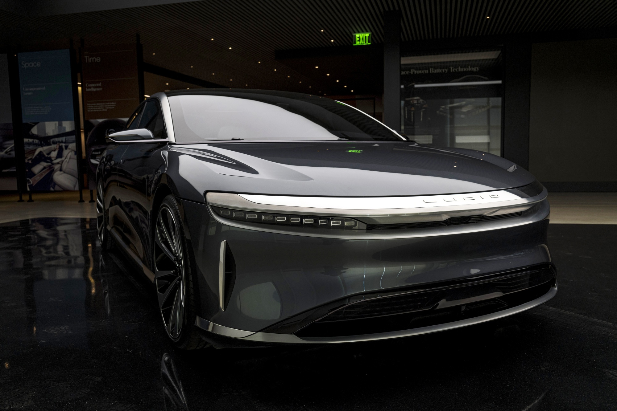 Lucid Air 原型电动汽车。摄影师:David Paul Morris/BloombergLucid部分由沙特王国主权财富基金拥有,预计将有85%的沙特制造电动汽车出口,而其他制造商预计将有约25%的出口。出口目标地包括印度、中国、非洲和中东其他地区。