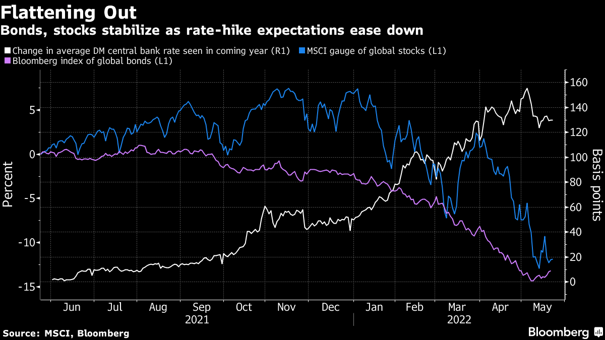 美联储主席杰罗姆·鲍威尔及其同事们发表了大量鹰派言论,以补充自2000年以来美国央行的首次半个百分点加息。全球同行也一直在呼吁收紧政策。然而,掉期交易商暗示,随着“衰退”一词开始受到如此多关注,最激烈的行动可能已经过去。
