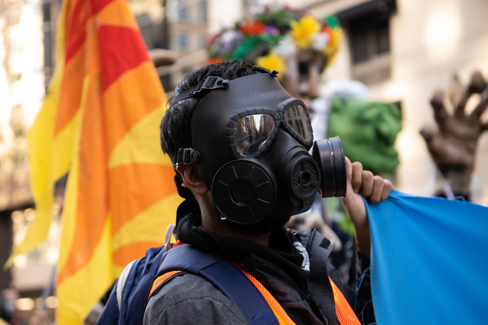 一名“灭绝叛逆”示威者在华盛顿的“地球日”抗议活动中游行。