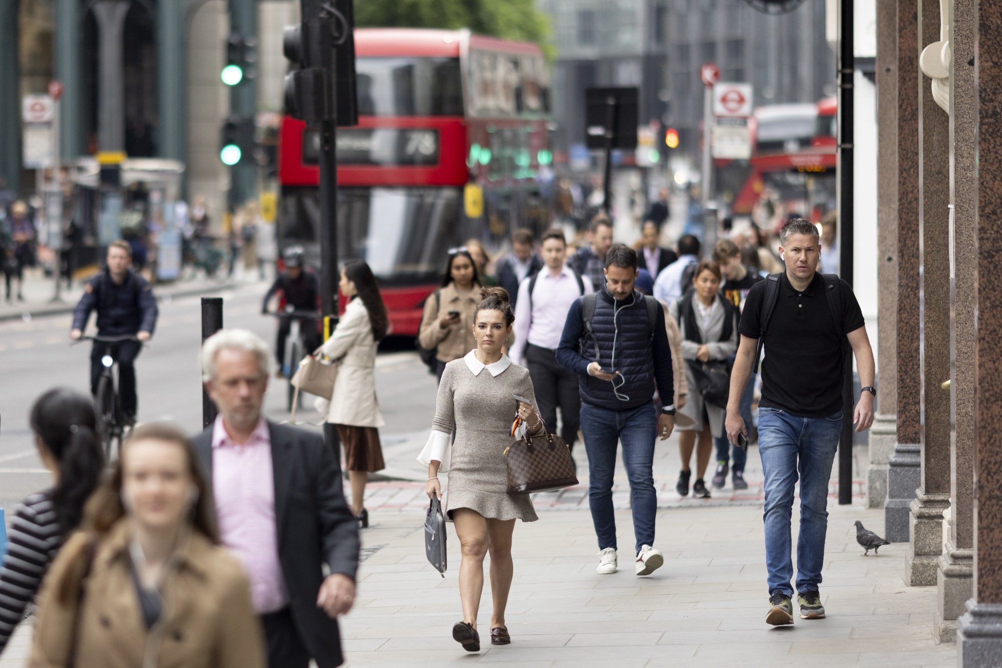 早晨通勤者抵达英国伦敦市。