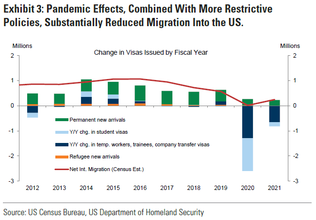 这带我们来到第二个消息。在受到疫情干扰和特朗普政府实施限制后,移民正在回升。