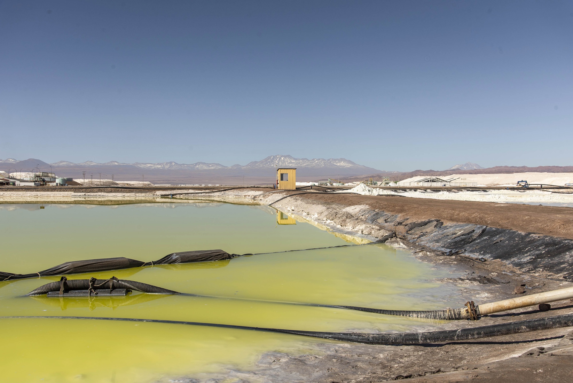 智利卡拉马的阿尔伯马尔公司锂矿的卤水池