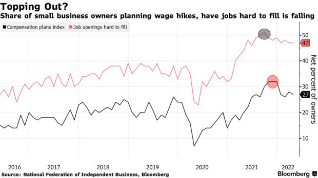 人员招聘公司、企业主和最近的调查显示,雇主可能正在达到一个临界点, Rich Miller 报道 这里。尤其是对于一般利润较低的小型企业来说,他们只能提高工资和福利到一定程度。