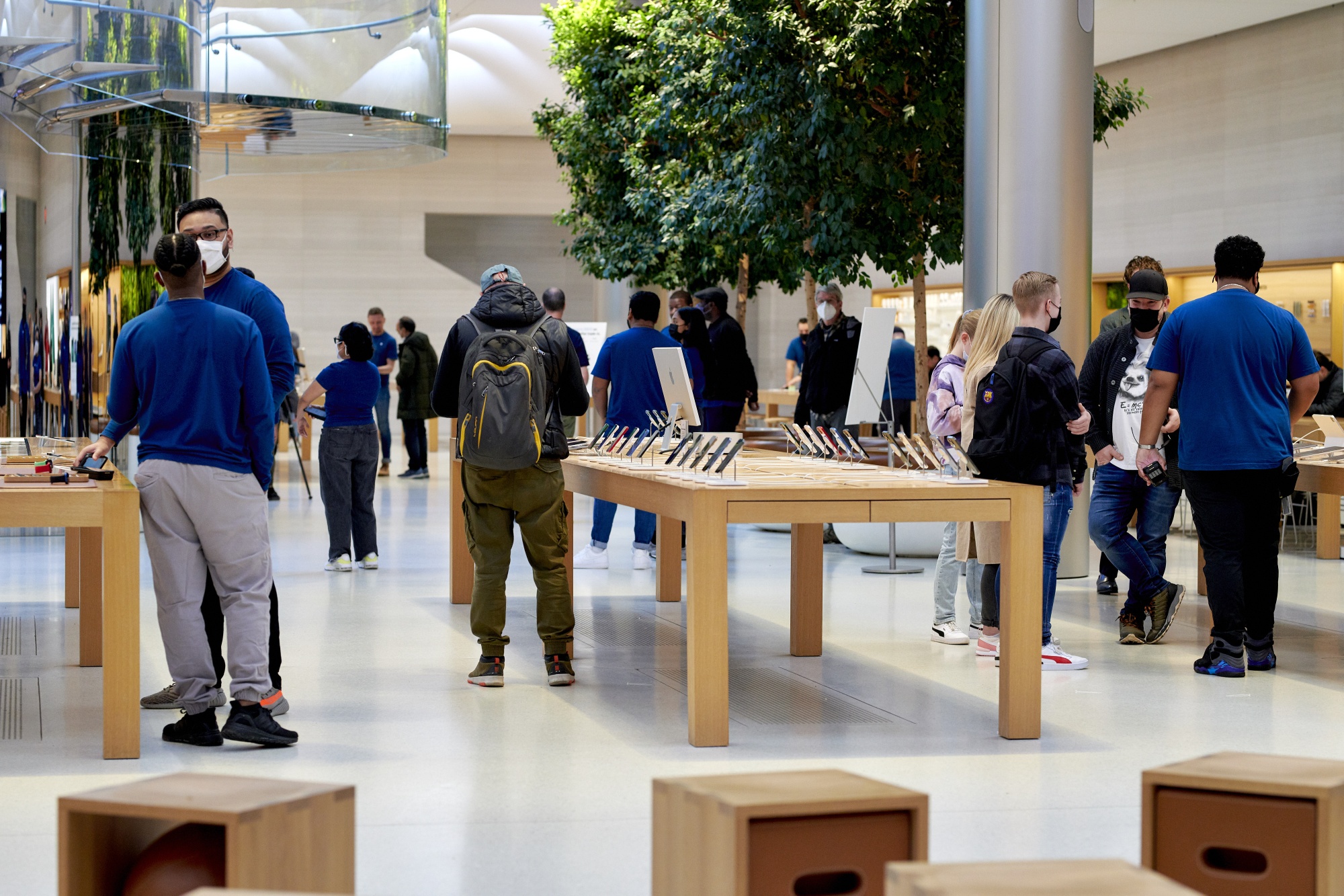 苹果零售员工。摄影师:Gabby Jones/Bloomberg**面对工会压力和通货膨胀,苹果加薪。**过去几周,美国各地的苹果零售员工一直在努力组建工会。当然,公司愿意尽其所能阻止这种情况发生。上周末是第一阶段:休息室里新的咖啡机(真的)。上周是更戏剧性的一步:将公司在美国的最低时薪提高了10%,从每小时20美元提高到22美元。苹果还在全公司范围内增加了补偿预算,并将一些团队的年度企业加薪提前。苹果的优惠可能已经产生了影响。试图在亚特兰大组建工会的劳工团体表示,周五将取消即将举行的选举。