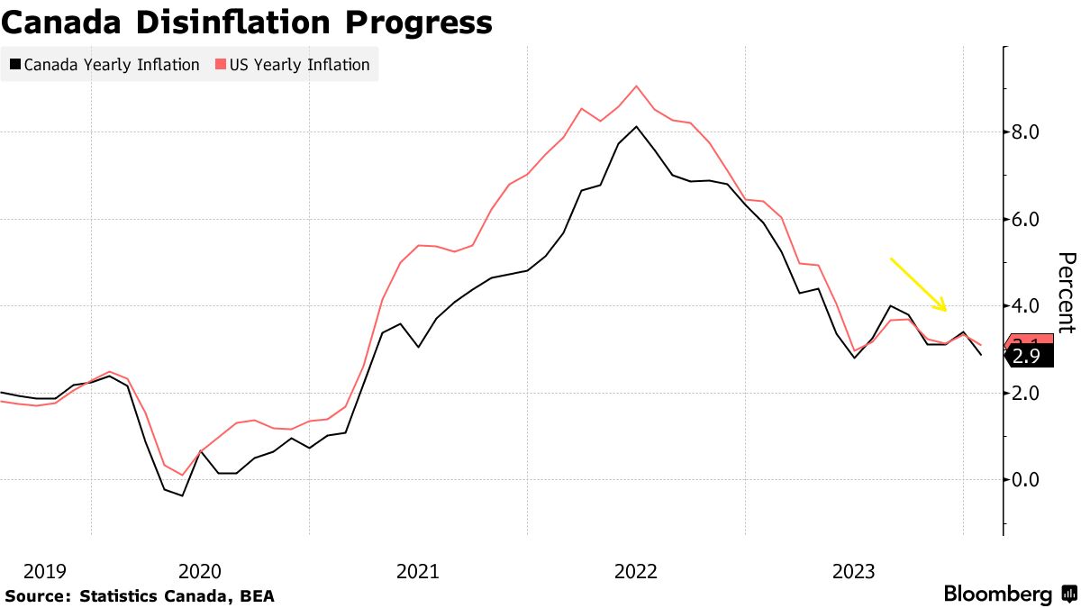 数据还突显了上个月加拿大和美国通胀之间的分歧。美国消费者价格比预期上涨 — 无论是按月还是按年 — 核心指标也是如此。这推迟了市场对美联储官员何时开始降息的预期。