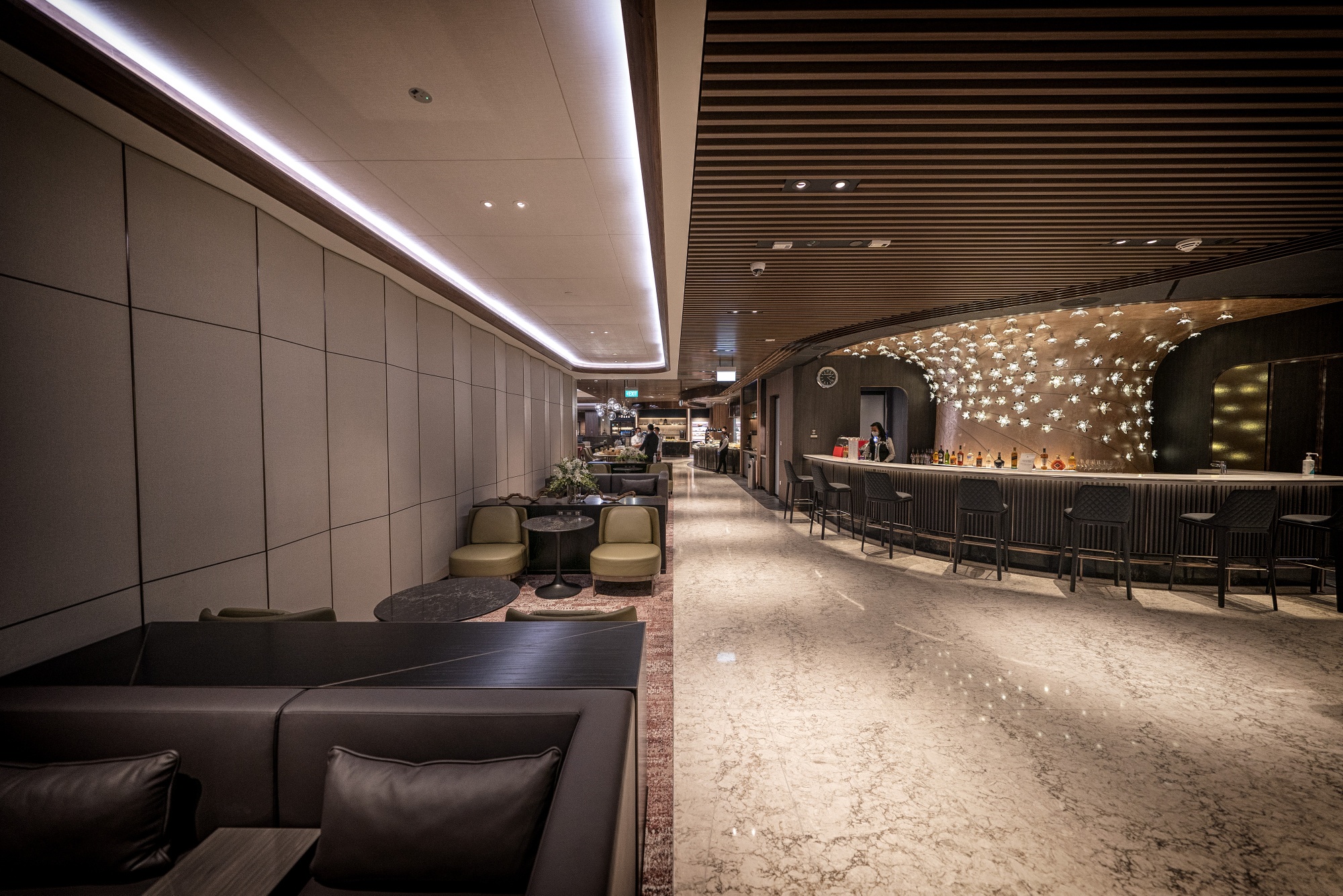 摄影师:Bryan van der Beek/Bloomberg摄影师:Bryan van der Beek/Bloomberg**以时尚方式重返旅行。**新加坡航空公司在樟宜机场开设了新的休息室,经过5千万新加坡元(3700万美元)的升级,增加了30%的座位和空间。头等舱SilverKris休息室和私人休息室,最独家的区域,将于周二开放,而商务舱区和KrisFlyer金卡休息室已经重新开放。