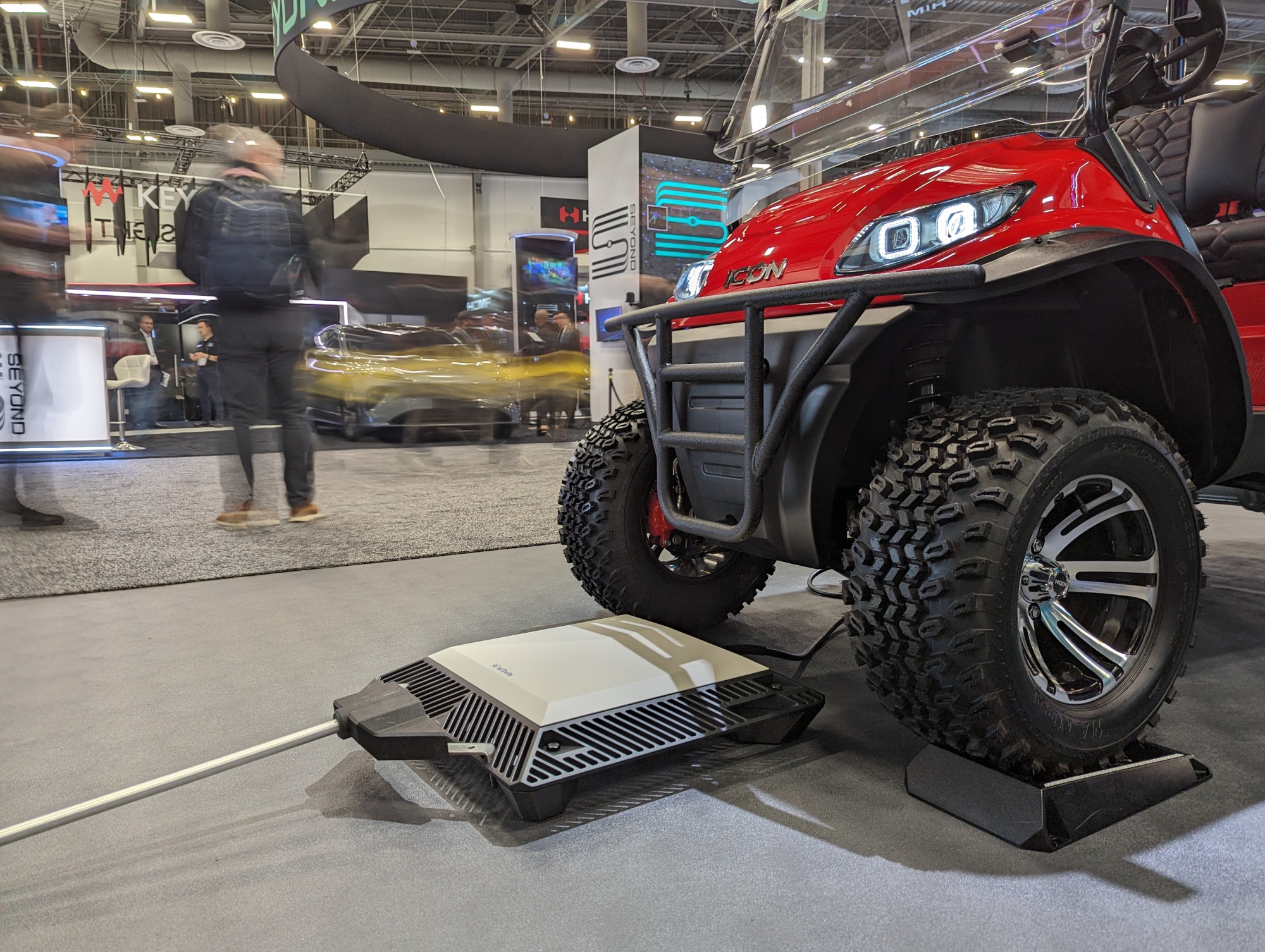 今年夏天,WiTricity计划在E-Z-GO和ICON EV高尔夫球车以及轻型车辆上推出其Halo无线系统,之前在改装车辆上展示了这项技术,如Ford的野马Mach-E。该公司的投资者包括三菱商事和西门子公司,WiTricity与韩国KG Mobility生产的汽车合作展示无线充电技术。WiTricity表示,乘用车使用其技术每小时最多可充电35英里。