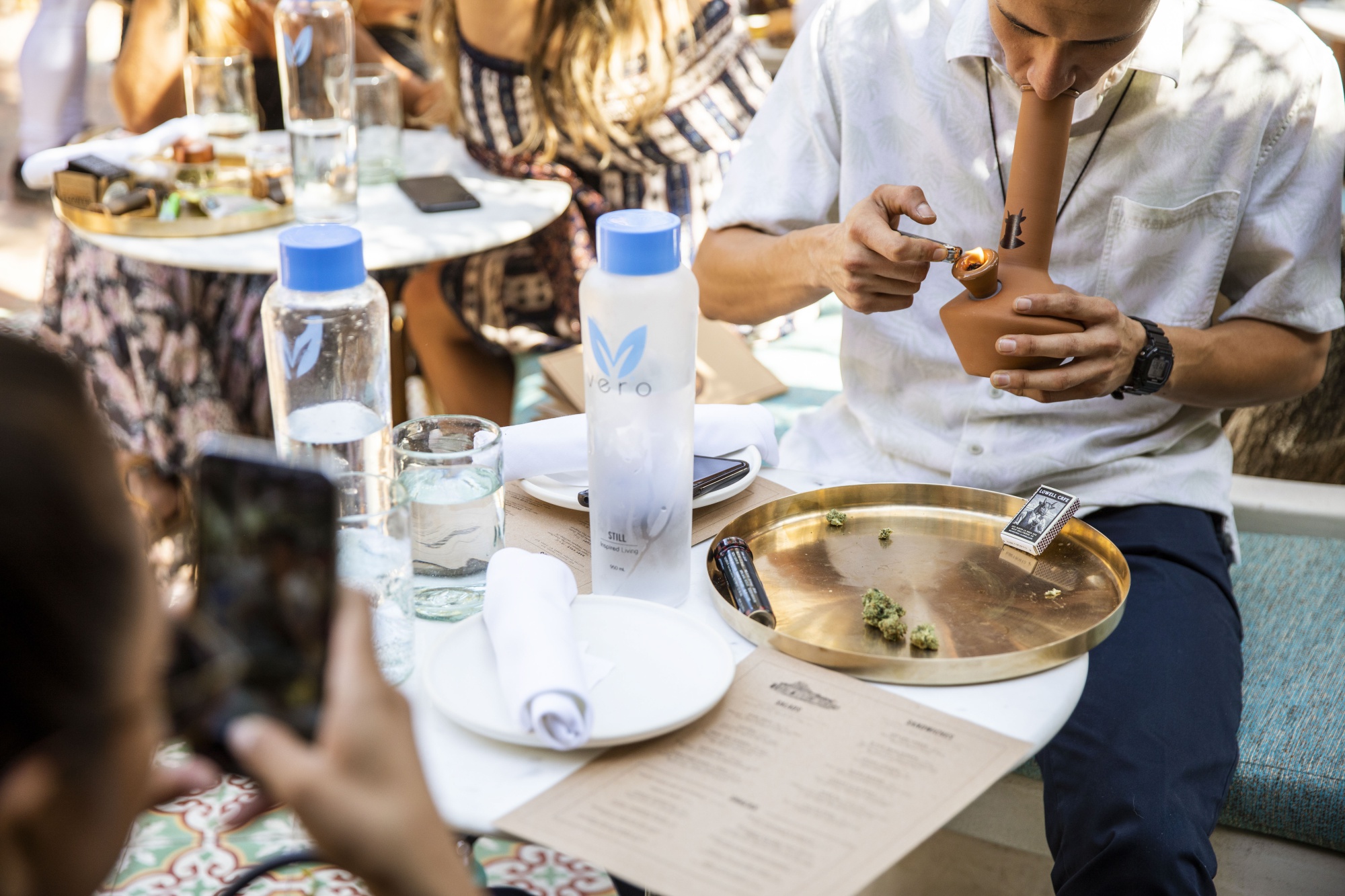 一个顾客在加利福尼亚州西好莱坞的大麻休息室吸食大麻。
