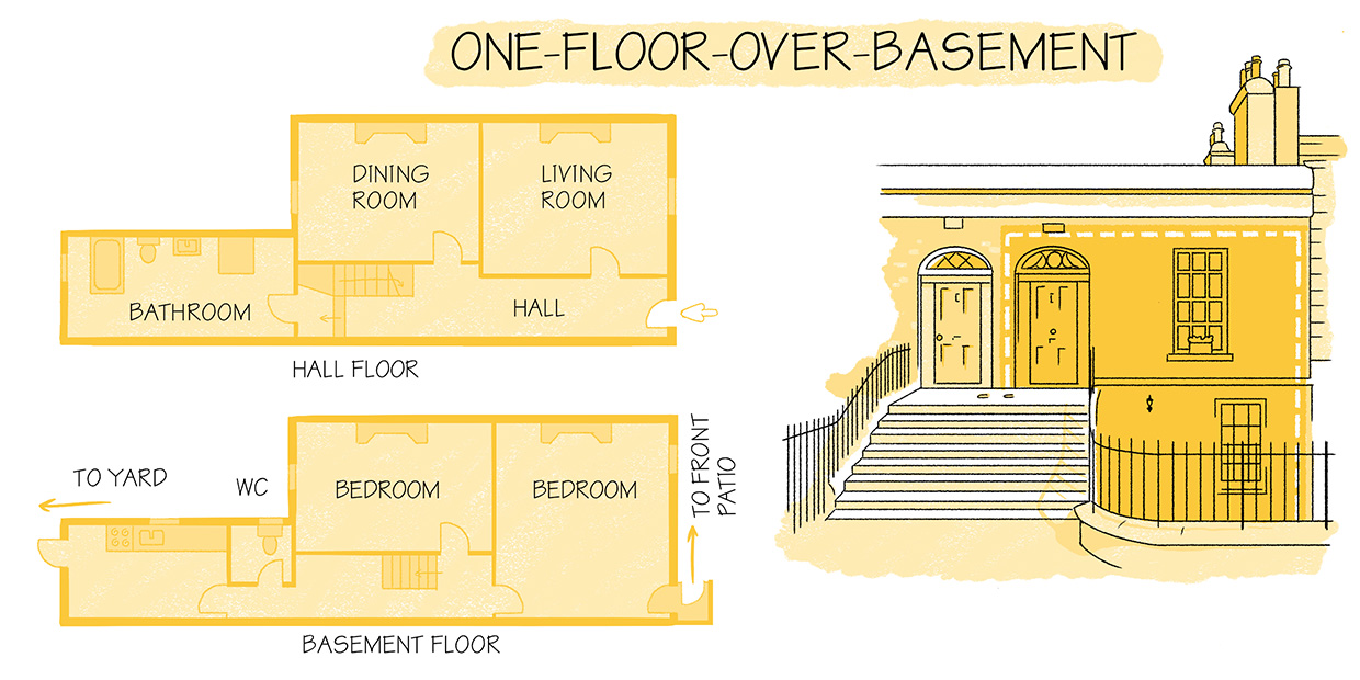 典型的都柏林地下一层的排屋是一座简单的红色或棕色砖结构,分为两层。它的独特外观来自于二楼的前门和带有扇形窗户的位置,以及从人行道上升起与之相遇的楼梯,或者从一个小前院。在下面,地下室层通常看起来有些隐藏,房屋内部似乎比从街上看到的谦逊外观要大得多。大多数房屋后面都有自己的花园,而在室内,通往下层的楼梯位于入口走廊的后端。