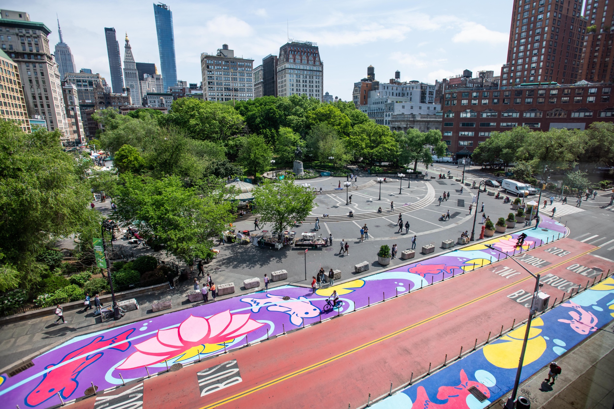纽约联合广场“涟漪和宁静”壁画的航拍视角。